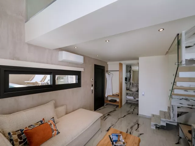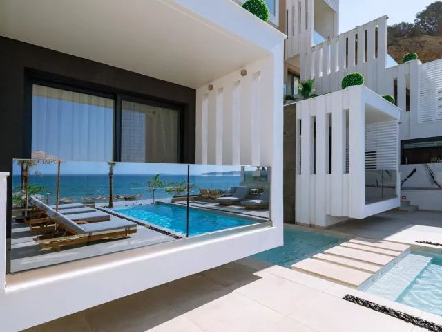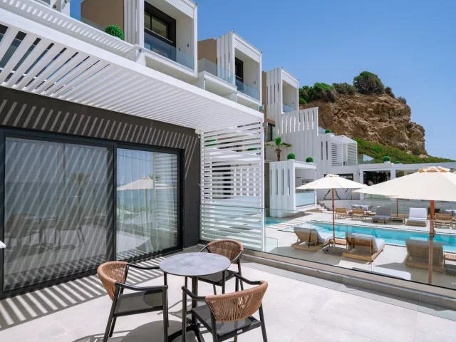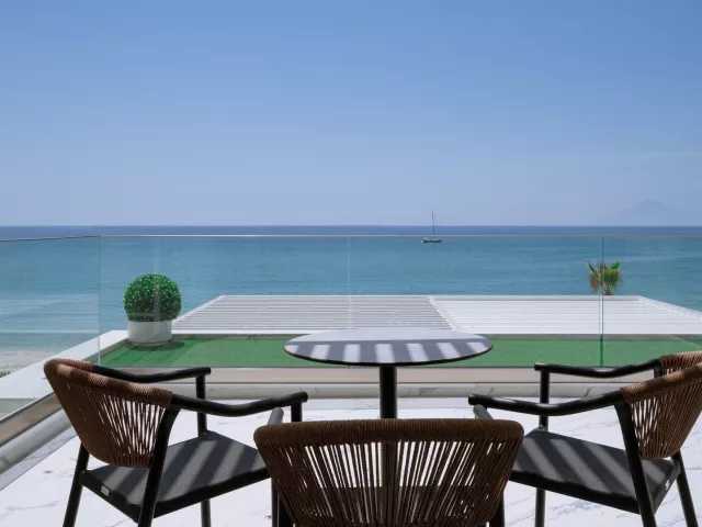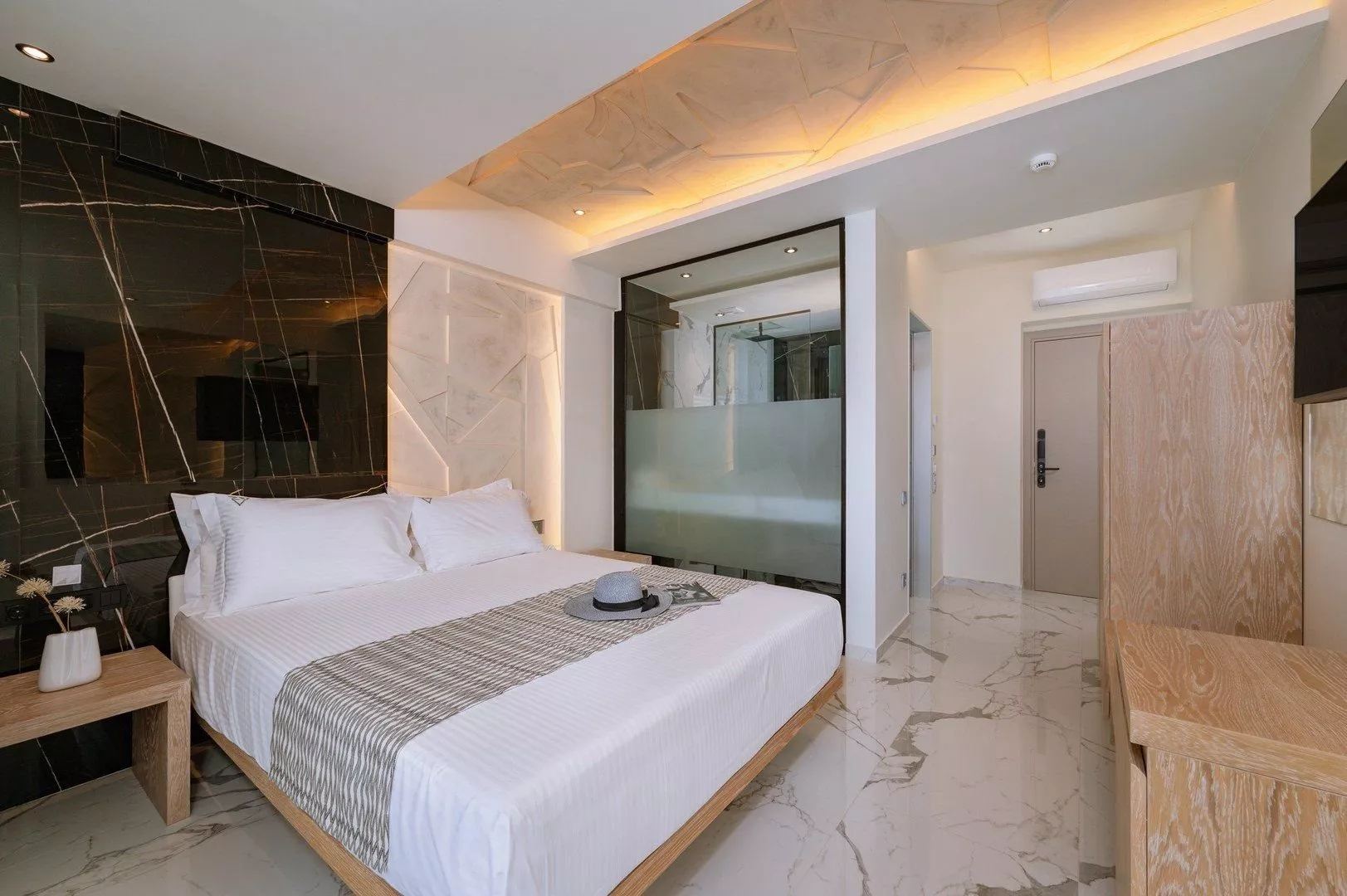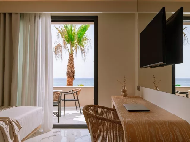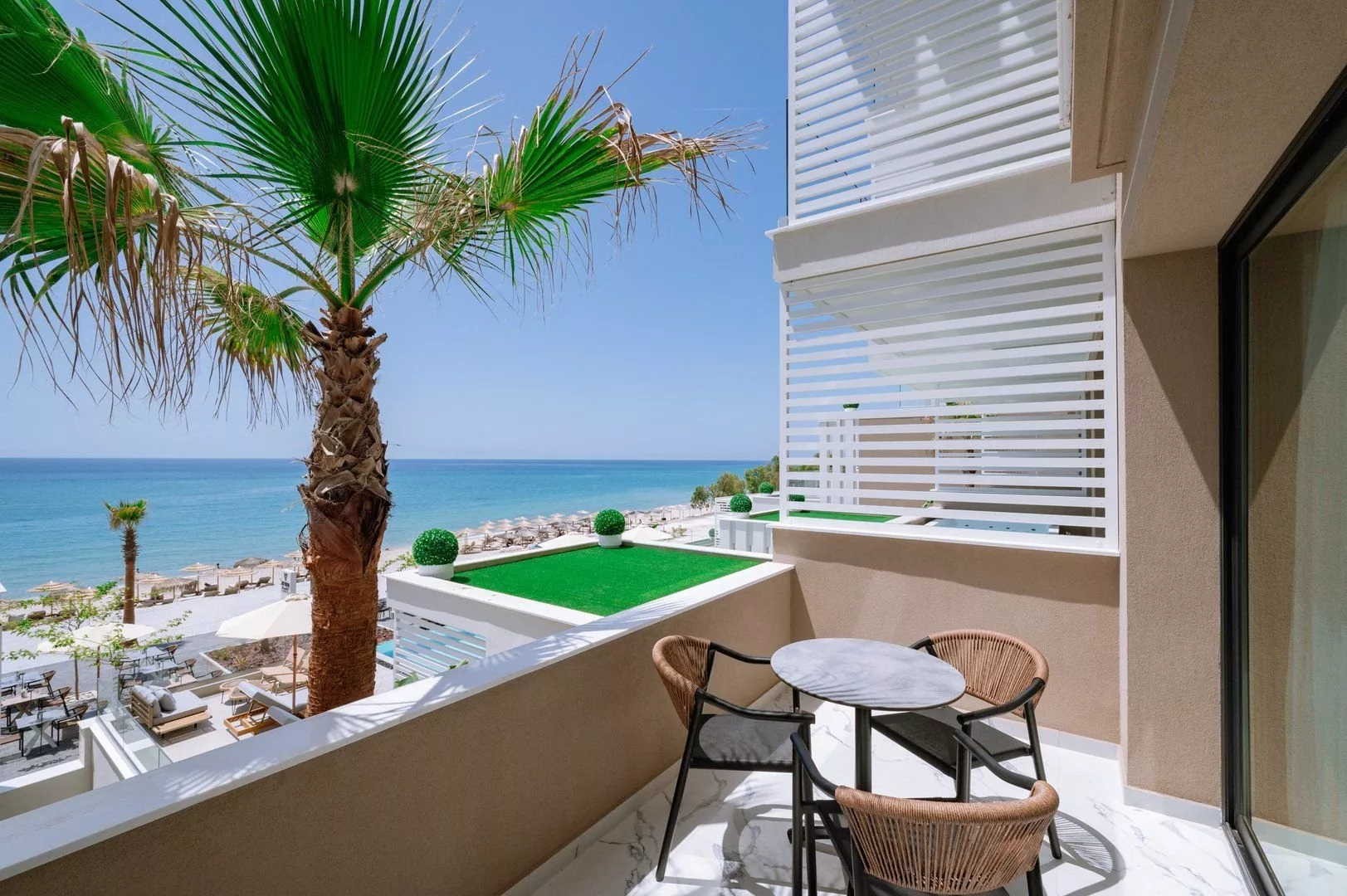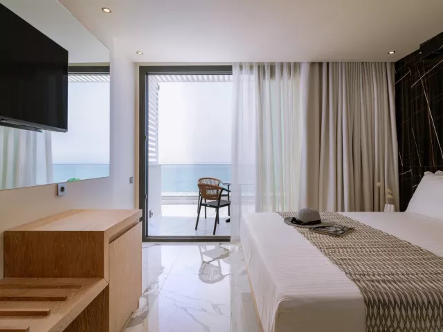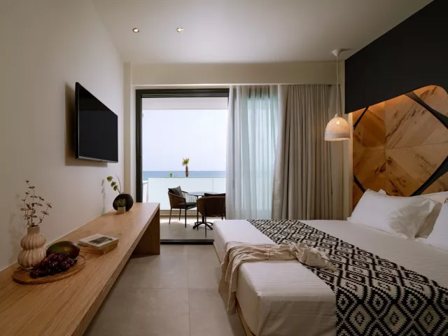 Deluxe dvojlôžkové izby s výhľadom na more sú vybavené vlastnou kúpeľňou (WC, sprcha, fén), WiFi, klimatizáciou, trezorom, balkónom alebo terasou. Možnosť za príplatok rezervovať priestrannejšie izby Junior Suite s výhľadom na more alebo mezonetové izby na vyžiadanie.