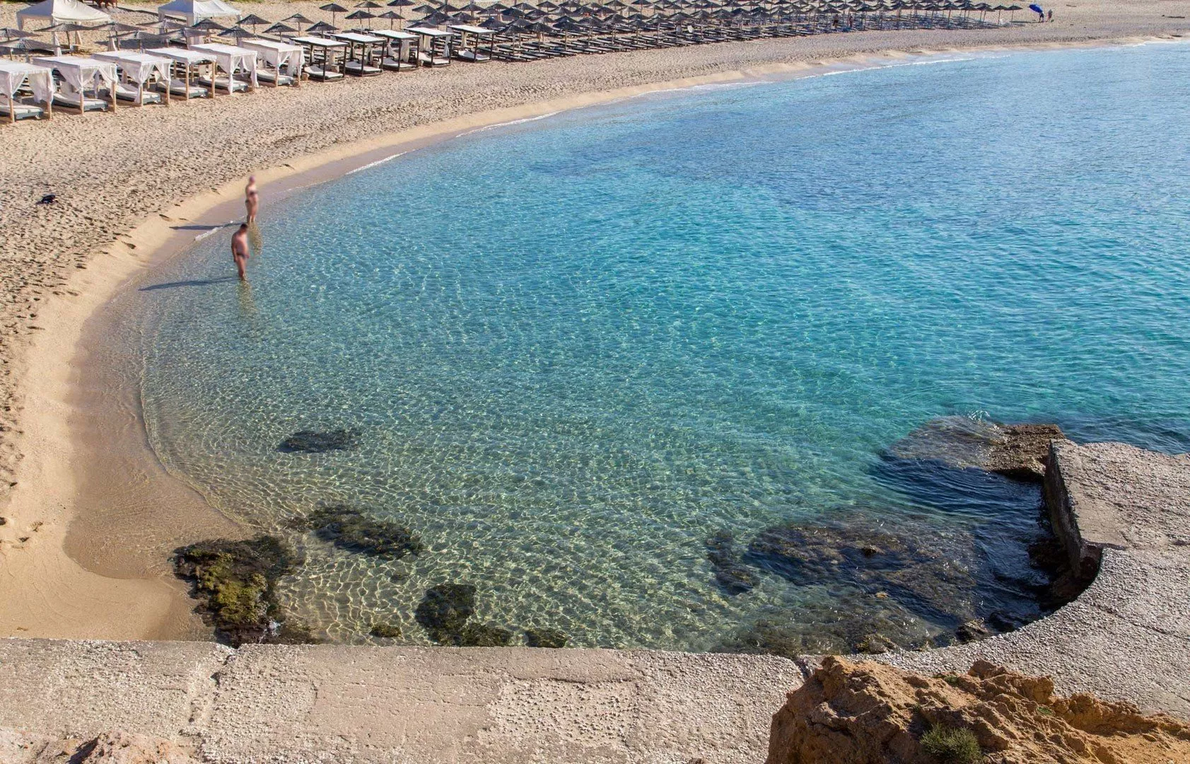 Vedľa hotela sa nachádza piesočnato-okruhliaková pláž Tripiti s pozvoľným vstupom do mora. Na pláži sú ležadlá a slnečníky k dispozícii za poplatok.