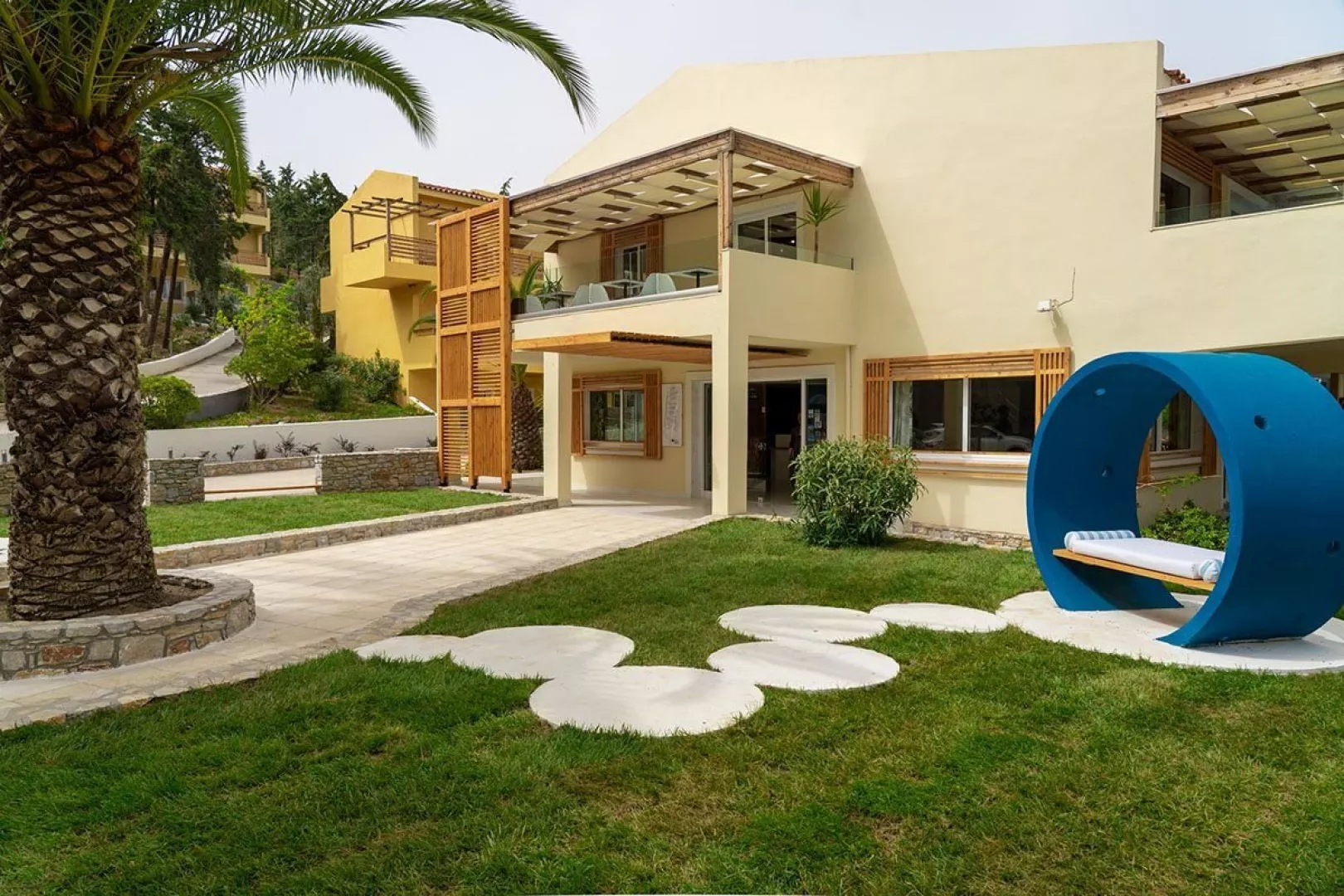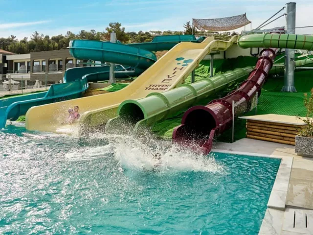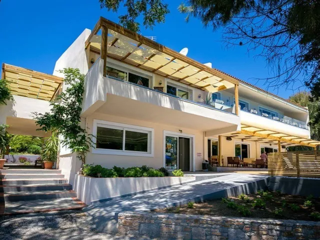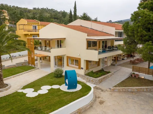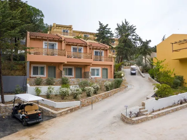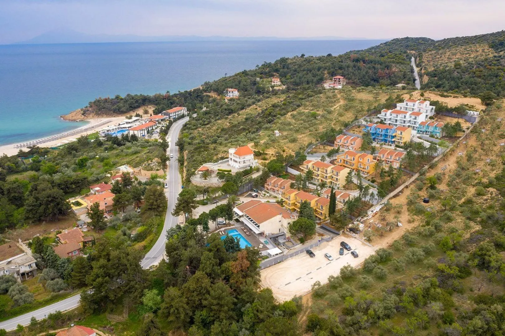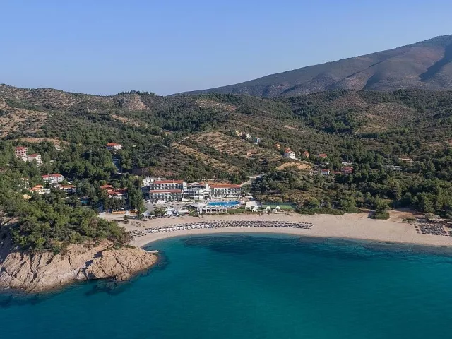 Hotelový komplex bungalovov je situovaný v záhrade na kopci nad plážou Tripiti Beach, približne 4 km od centra strediska Limenaria. Najbližšie obchody, reštaurácie a bary sa nachádzajú cca 2 km od hotela, zatiaľ čo autobusová zastávka je vzdialená okolo 200 m. Vzhľadom na polohu na kopci nie je hotel odporúčaný osobám so zníženou pohyblivosťou.