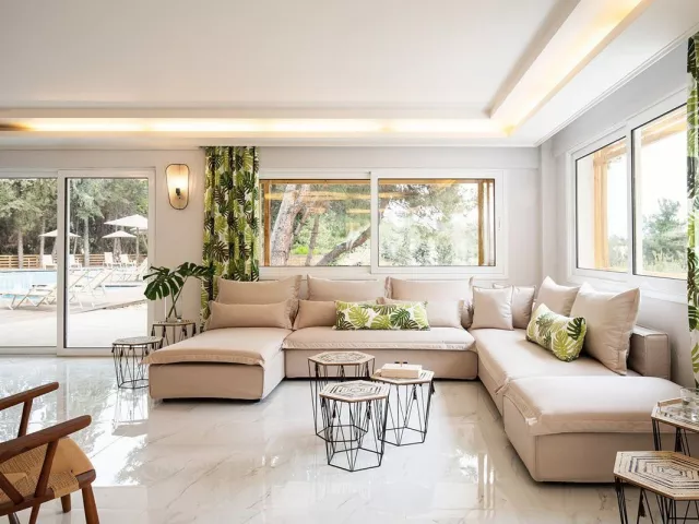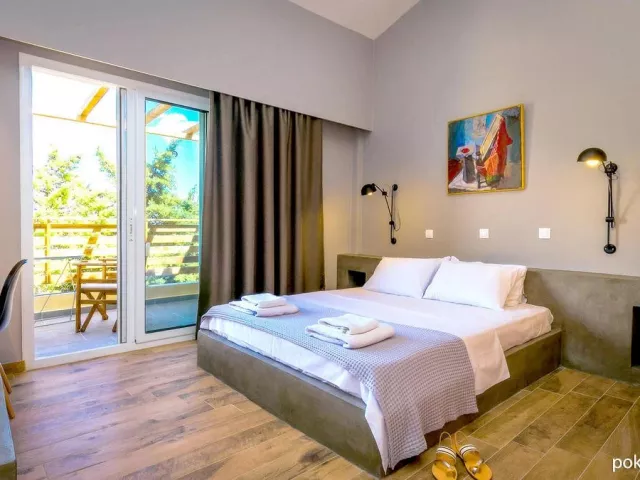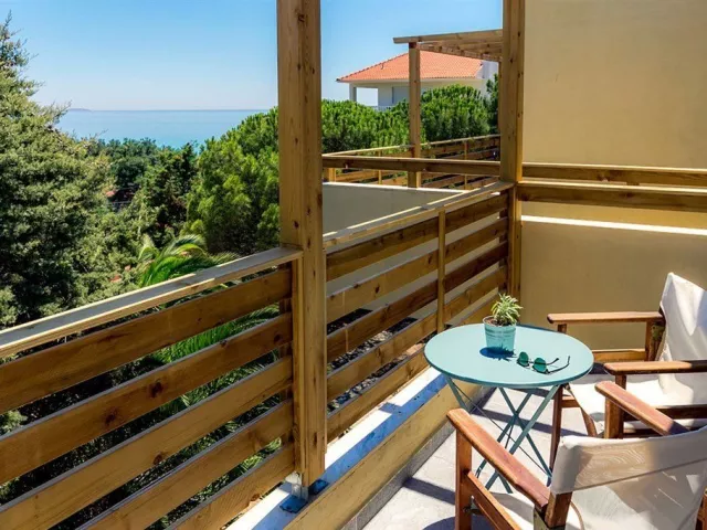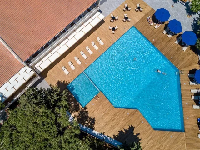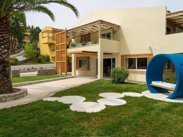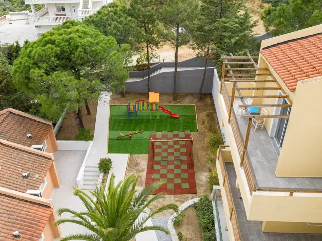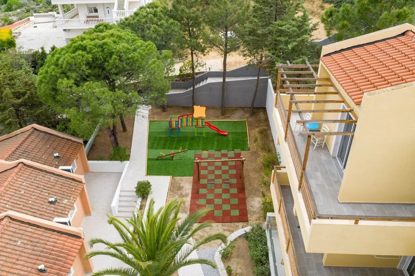 Hotelový komplex bungalovov je situovaný v záhrade na kopci nad plážou Tripiti Beach, približne 4 km od centra strediska Limenaria. Najbližšie obchody, reštaurácie a bary sa nachádzajú cca 2 km od hotela, zatiaľ čo autobusová zastávka je vzdialená okolo 200 m. Vzhľadom na polohu na kopci nie je hotel odporúčaný osobám so zníženou pohyblivosťou.