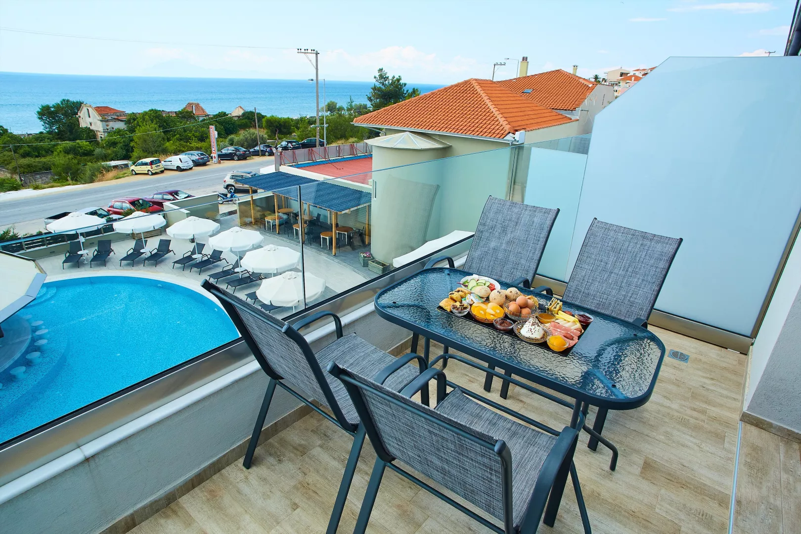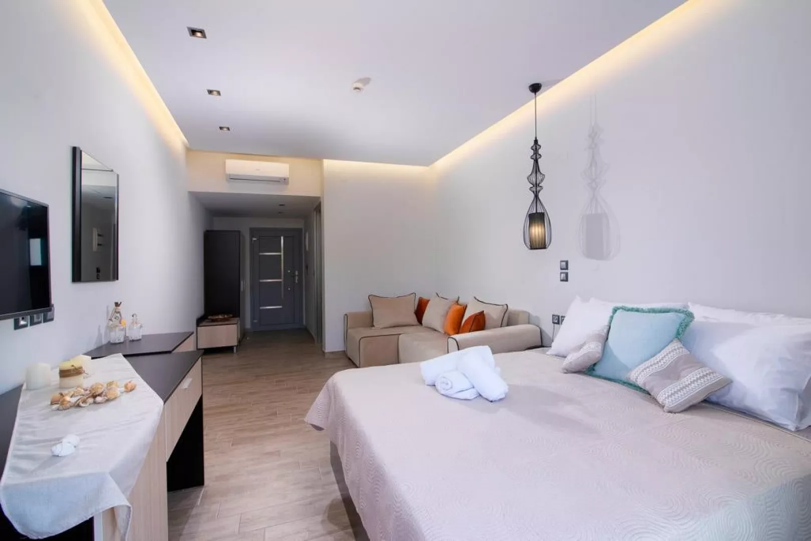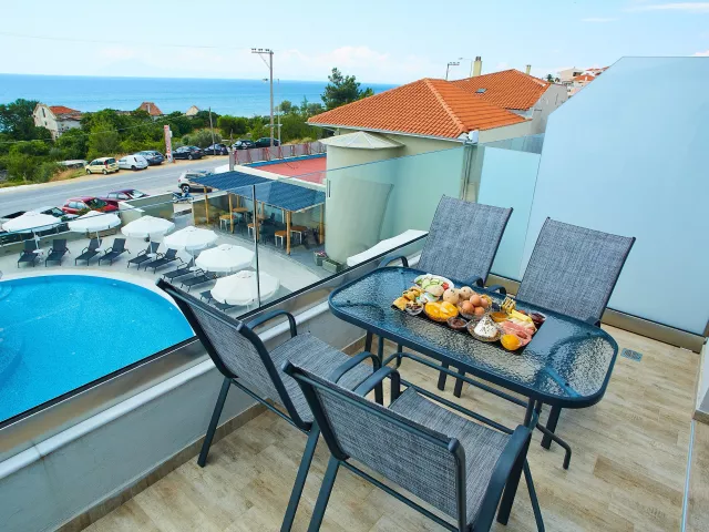 Izby sú vybavené klimatizáciou, TV, chladničkou, trezorom, telefónom a balkónom. Dvojlôžková izba Deluxe ponúka výhľad na hory alebo more, pričom všetky izby majú kúpeľňu s WC a sušičom vlasov.