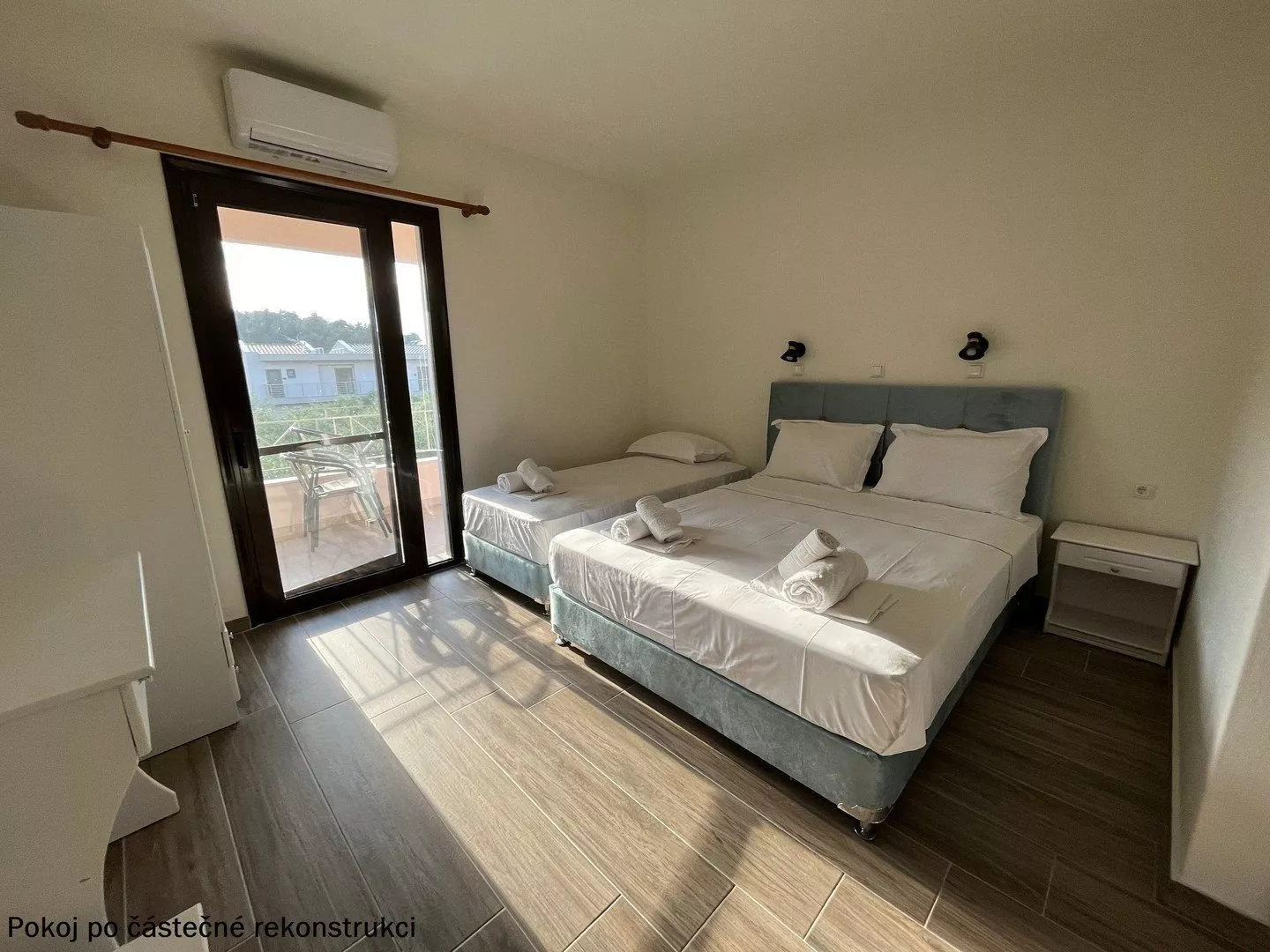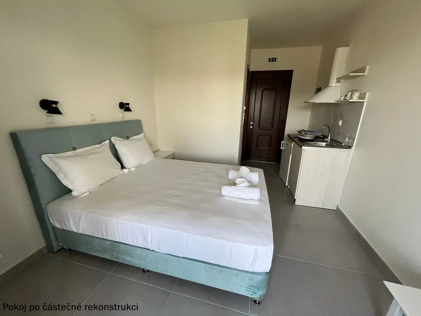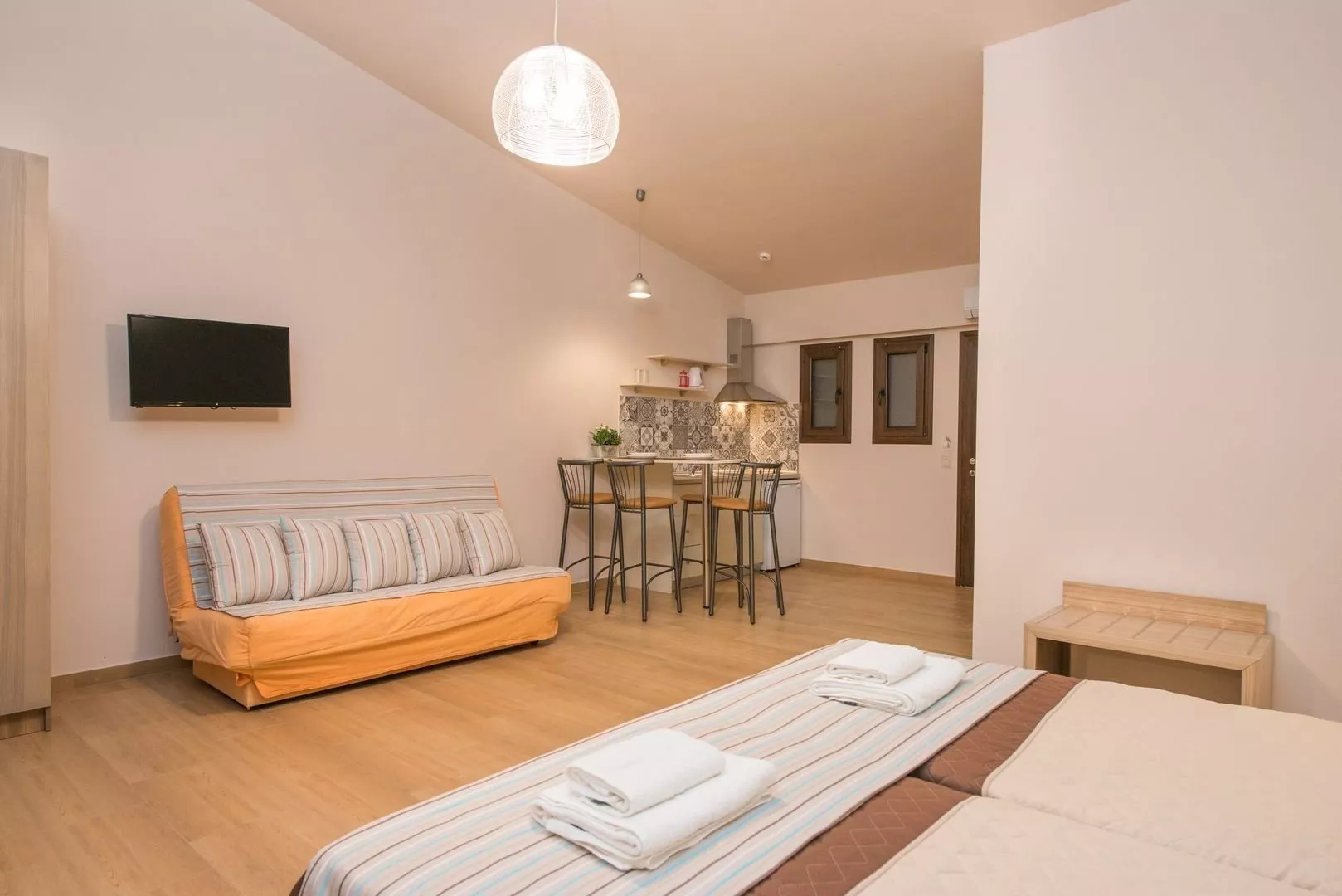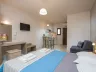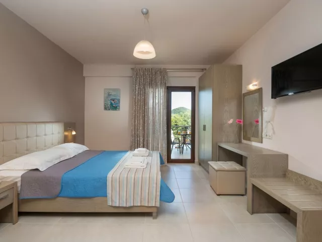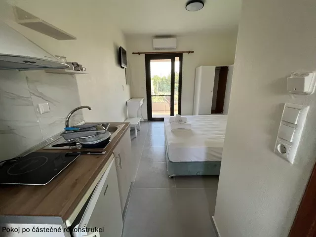 Izby sú zariadené ako štúdiá s možnosťou prístelky. Každé štúdio obsahuje kúpeľňu s WC, kuchynku, chladničku a jednoplatničkový varič. Trezor je k dispozícii na izbe zdarma. Klimatizácia je za poplatok 5 EUR za deň. Niektoré štúdiá majú výhľad na bazén a ponúkajú možnosť až dvoch prísteliek.