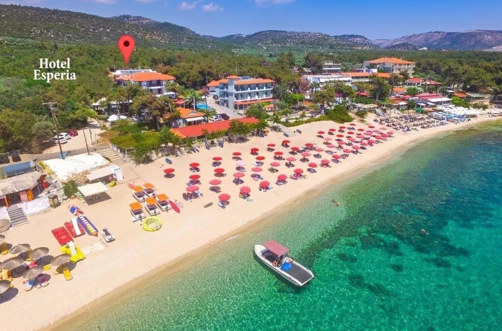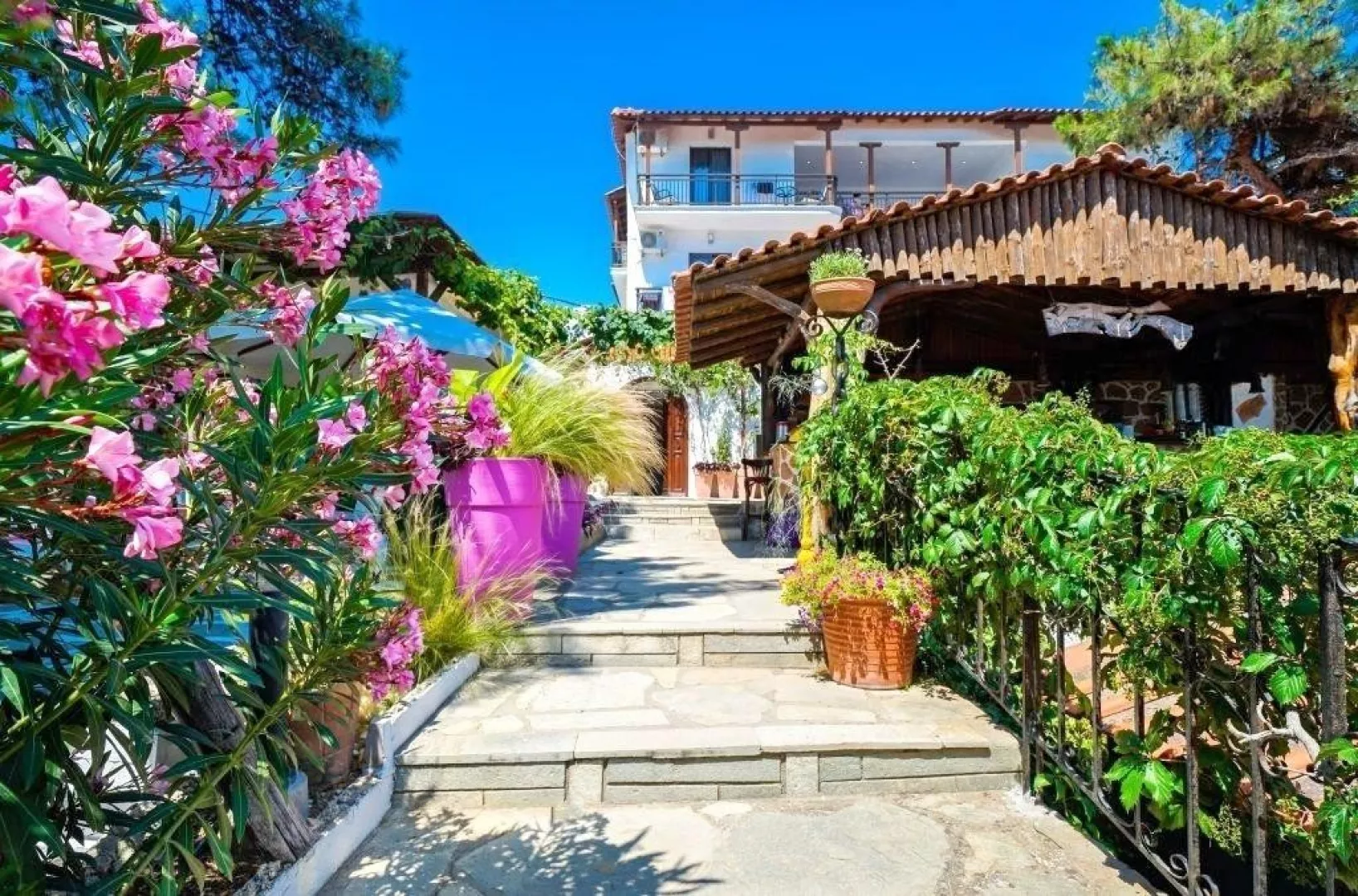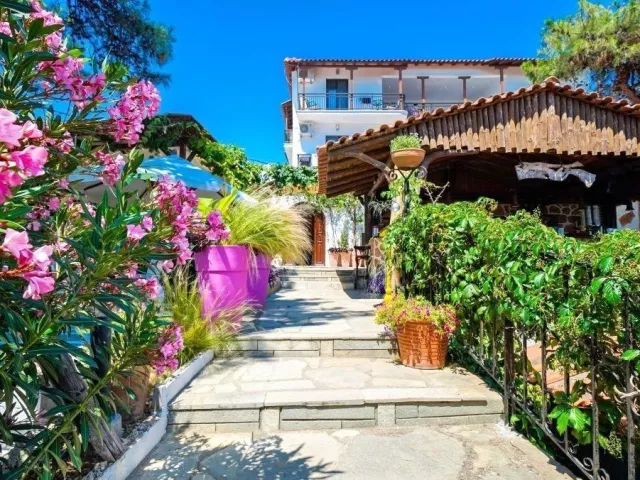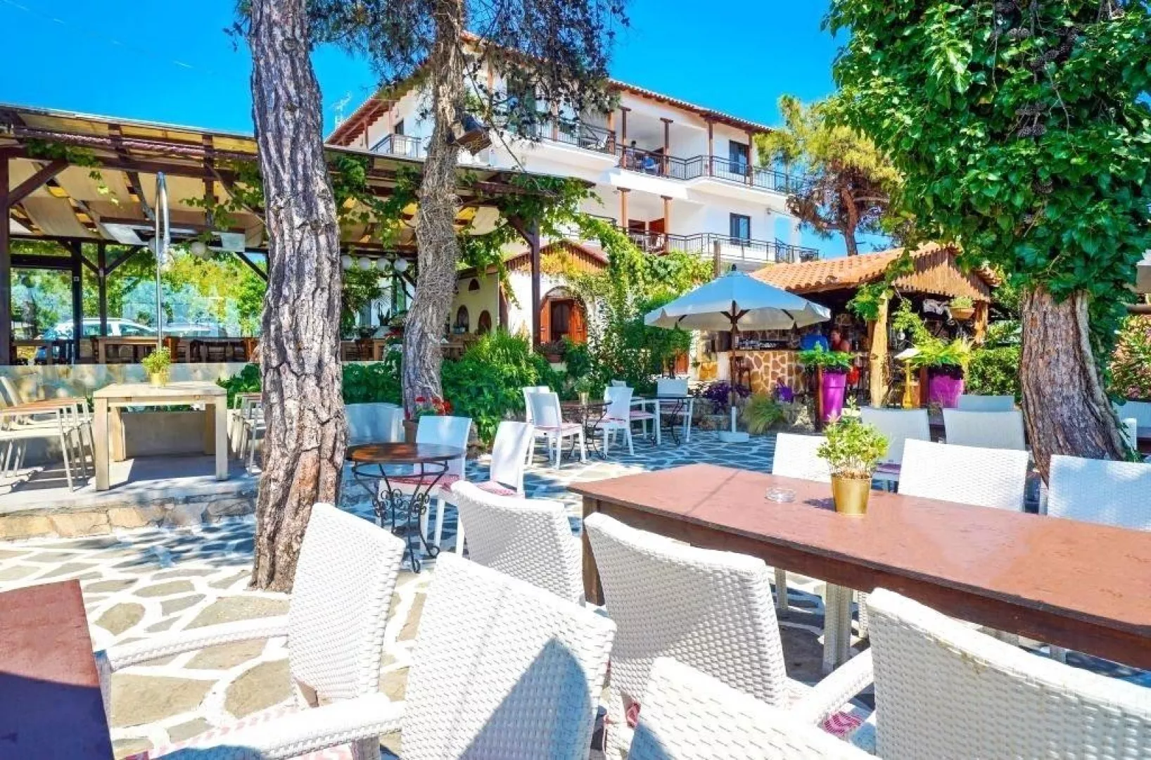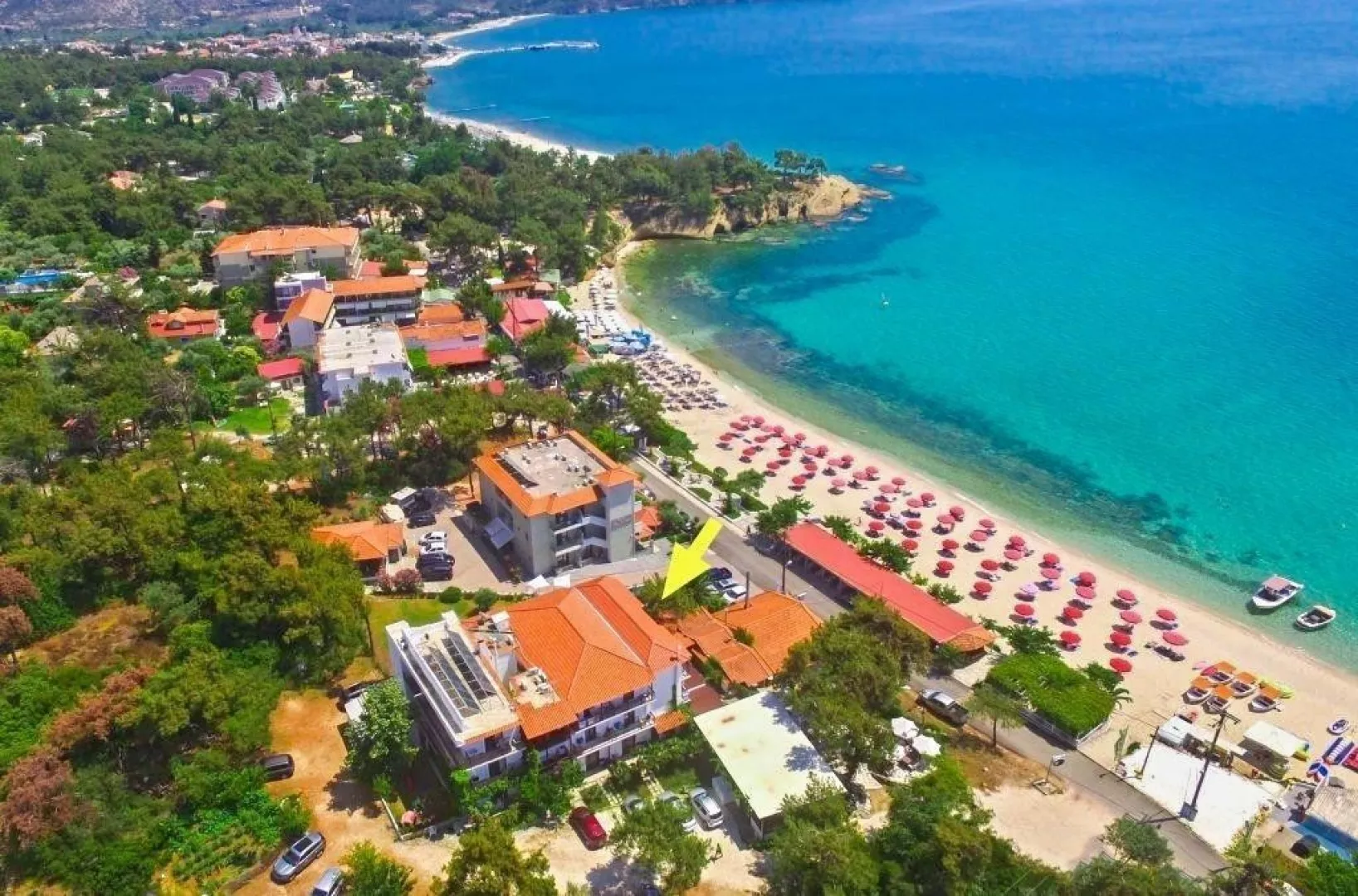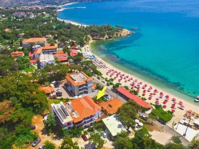 Menší hotel s príjemnou a priateľskou atmosférou sa nachádza na pokojnom mieste v Pefkari na juhozápade ostrova, medzi mestami Potos (len 20 minút chôdze od centra) a Limenaria (približne 2,5 km). V okolí je množstvo reštaurácií, taverien, kaviarní a obchodov. Piesočnatá pláž sa nachádza pred hotelom a je oddelená od hotela miestnou komunikáciou. V bezprostrednej blízkosti hotela sa nachádzajú taverny, bary a kaviareň, pričom niekoľko menších pláží a zátok je v pešej vzdialenosti.