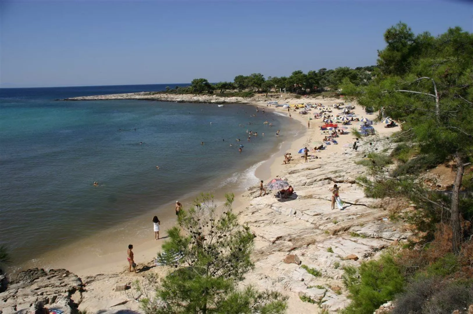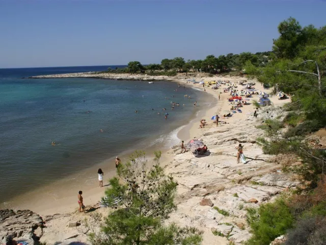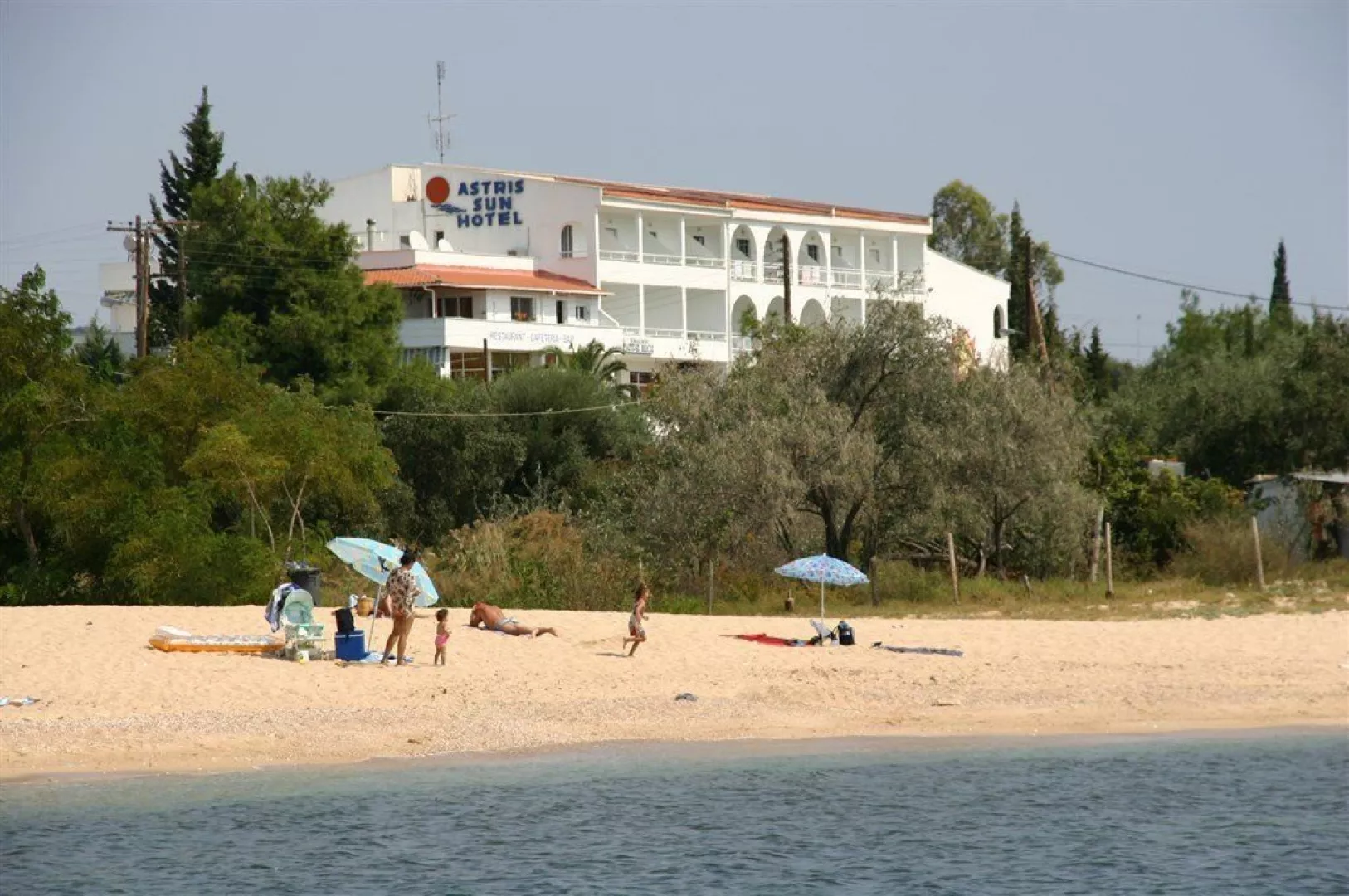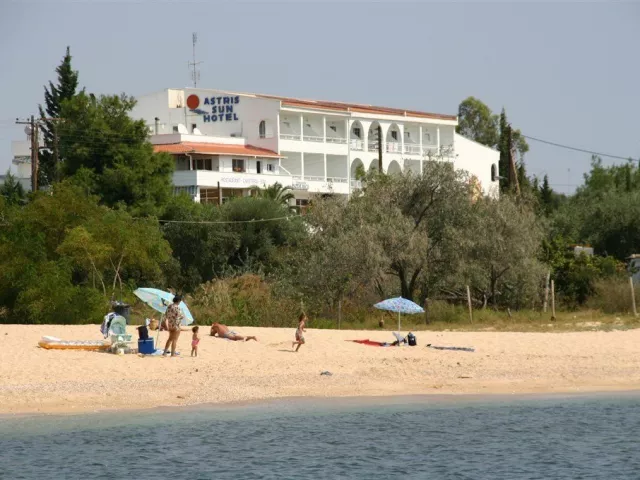 Piesočnatá pláž je vzdialená približne 100 m od hotela, prístupná cez miestnu komunikáciu. Medzi najkrajšie pláže ostrova patrí Psili Amos, ktorá je vzdialená približne 10 minút chôdze; na tejto pláži sú lehátka a slnečníky za príplatok.