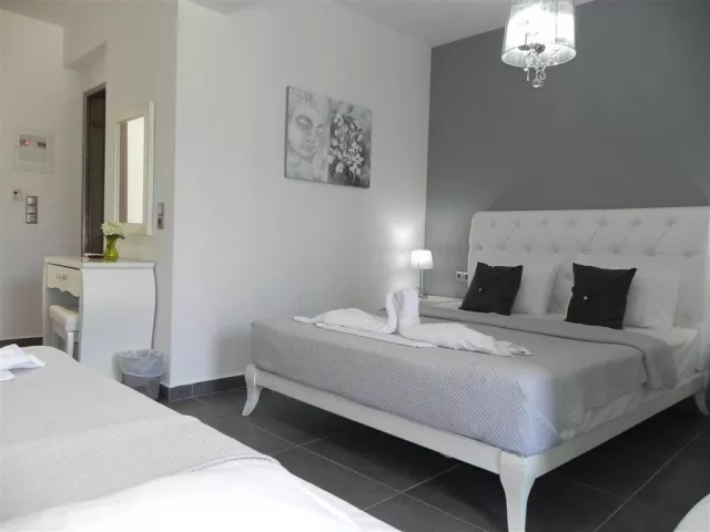 Rodinný dvojpodlažný hotel sa nachádza v záhrade, v blízkosti mora, približne 5 km od strediska Potos, 50 km od prístavu Limenas a 70 km od letiska Kavala. Autobusová zastávka je neďaleko hotela.