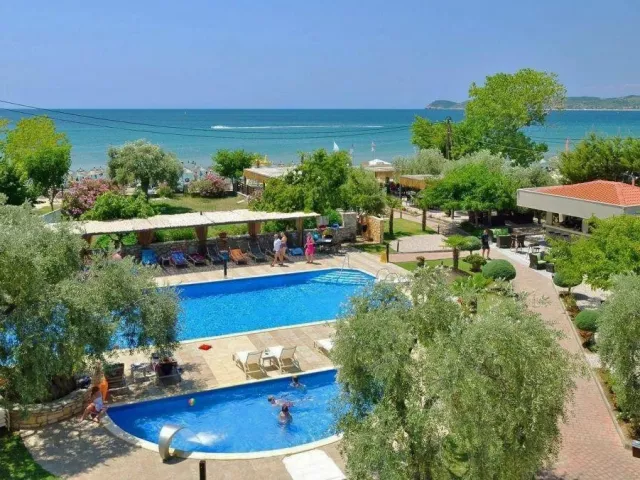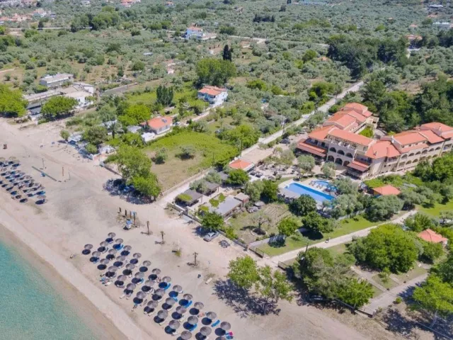 Udržiavaný hotel sa nachádza priamo pri piesočnatej pláži v blízkosti mestečka Potos. Letisko v Kavale je vzdialené približne 70 km, najbližšie obchody a bary sú vzdialené asi 200 m od hotela.
