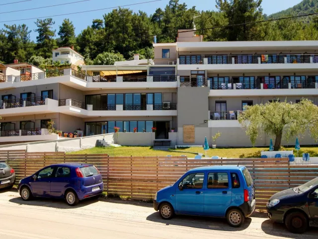 Piesočnatá verejná pláž Skala Potamia je vzdialená cca 150 - 200 m od hotela s prístupom po miestnej komunikácii. Pláž Golden Beach je vzdialená približne 700 m. Lehátka a slnečníky sú na oboch plážach k dispozícii za poplatok.