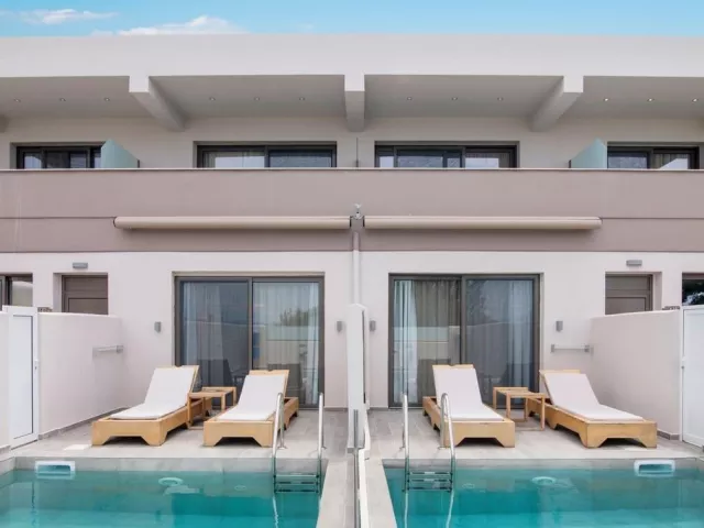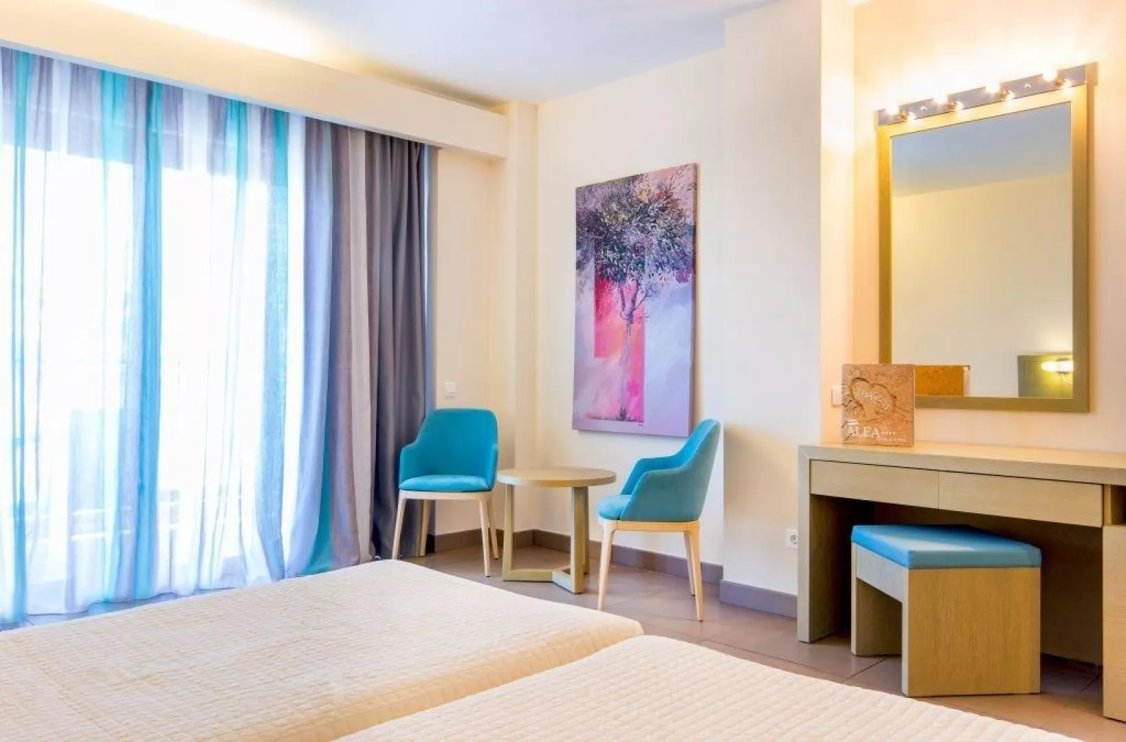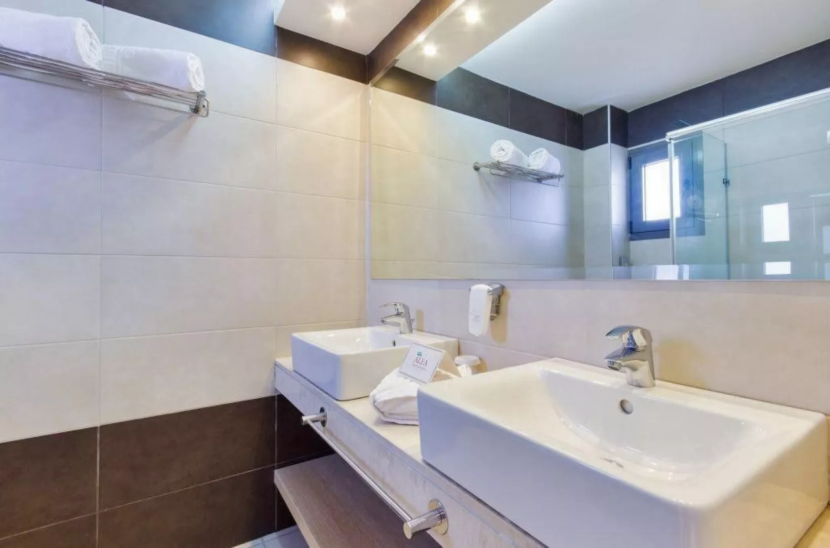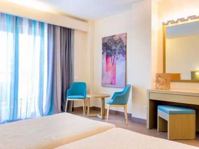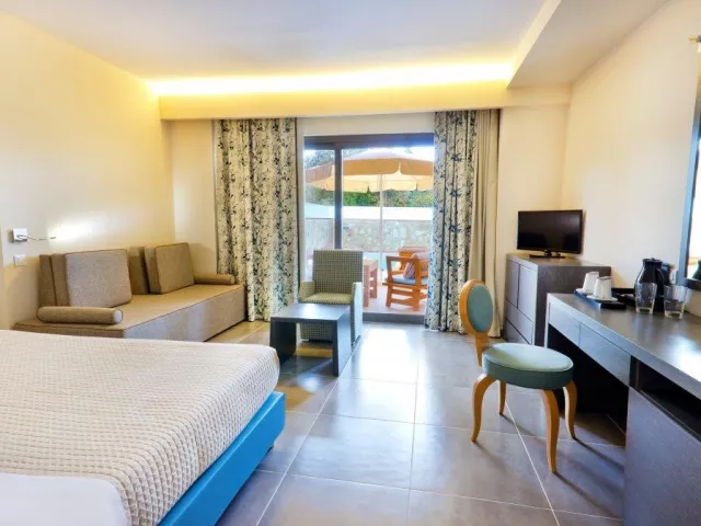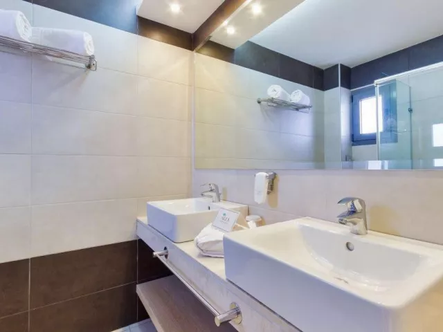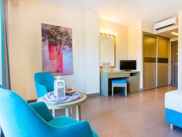 Dvojlôžkové izby sú vybavené kúpeľňou/WC (so sušičom vlasov), klimatizáciou, telefónom, TV/sat, chladničkou, trezorom (zadarmo) a balkónom alebo terasou, pričom väčšina izieb má výhľad na bazén. Rôzne typy izieb zahŕňajú priestrannejšie Junior Suite, Rodinné izby a Suita s oddelenou spálňou a ďalšími vymoženosťami.