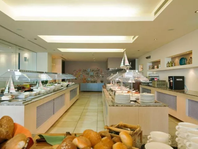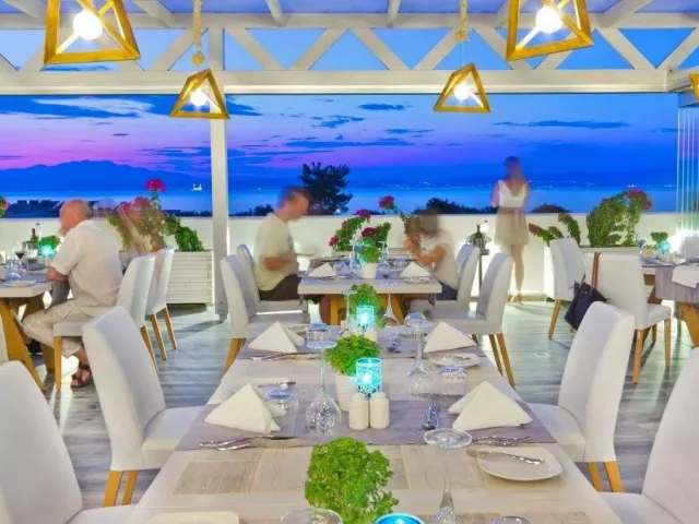 Ponuka stravovania zahŕňa polpenziu Plus s raňajkami a večerami formou bufetu vrátane nápojov. Hlavná reštaurácia ponúka raňajky od 7:30 do 10:30 a večere od 19:00 do 21:00. Spoločné stravovanie zabezpečuje aj Taverna na pláži a rôzne bary, ktoré sú otvorené v priebehu dňa a do noci.