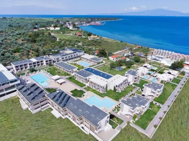 Hotelový komplex sa nachádza približne 1 km od Skala Prinos v pokojnej lokalite pri pláži. Prístav Limenas je vzdialený približne 12 km a letisko Kavala je vzdialené 40 km.