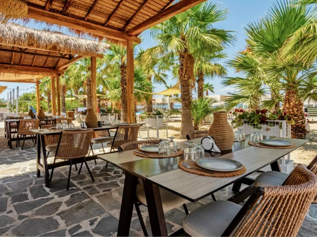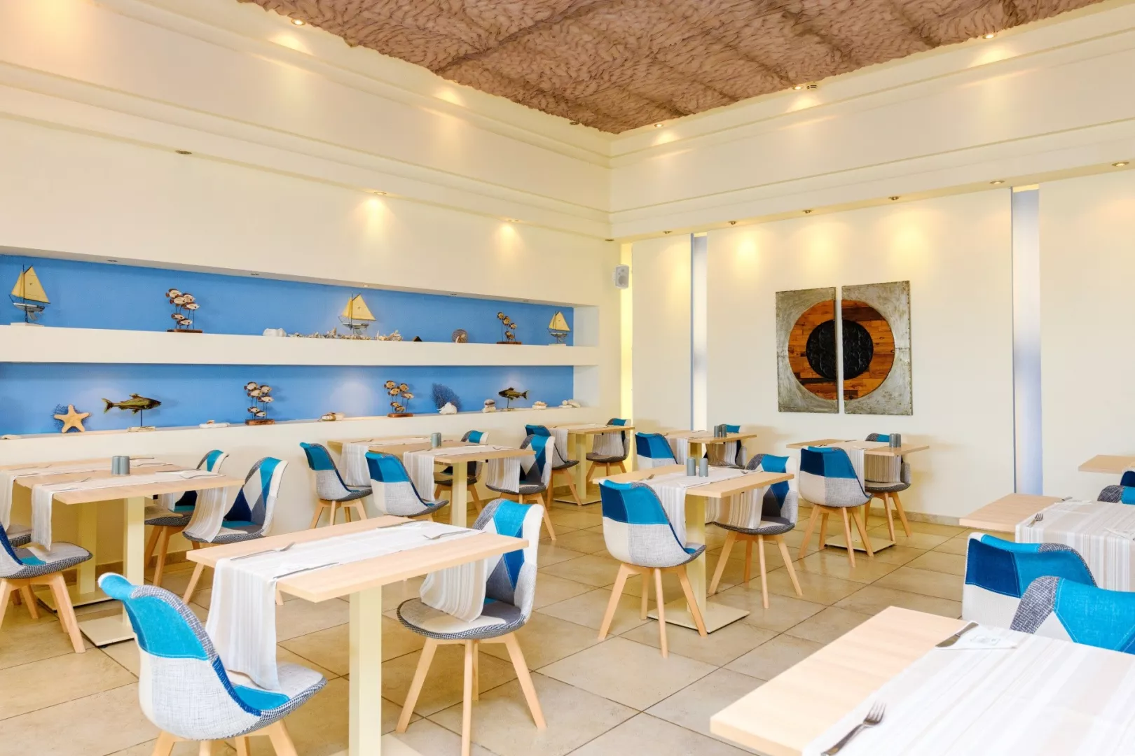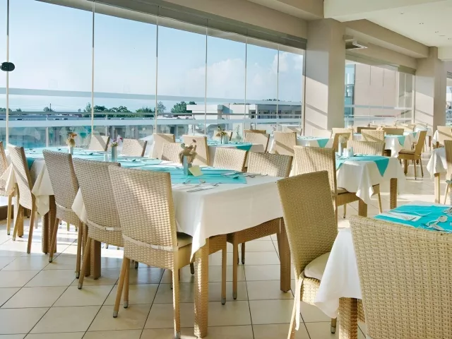 161 izieb v niekoľkých jedno až dvojposchodových budovách, vstupná hala s recepciou, reštaurácia, strešná reštaurácia à la carte, bar, konferenčné centrum. 2 vonkajšie bazény a 1 vnútorný bazén, vírivka, bar pri bazéne, ležadlá a slnečníky pri bazéne zadarmo (osušky za kauciu). Piesočnatá pláž priamo pri hoteli, ležadlá a slnečníky zadarmo. Reštaurácia a bar pri pláži.