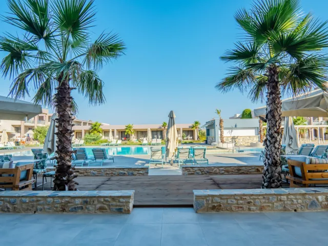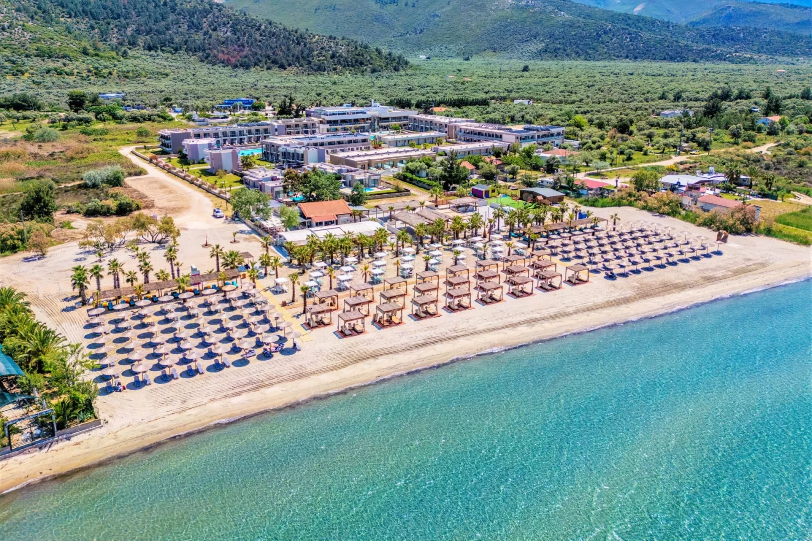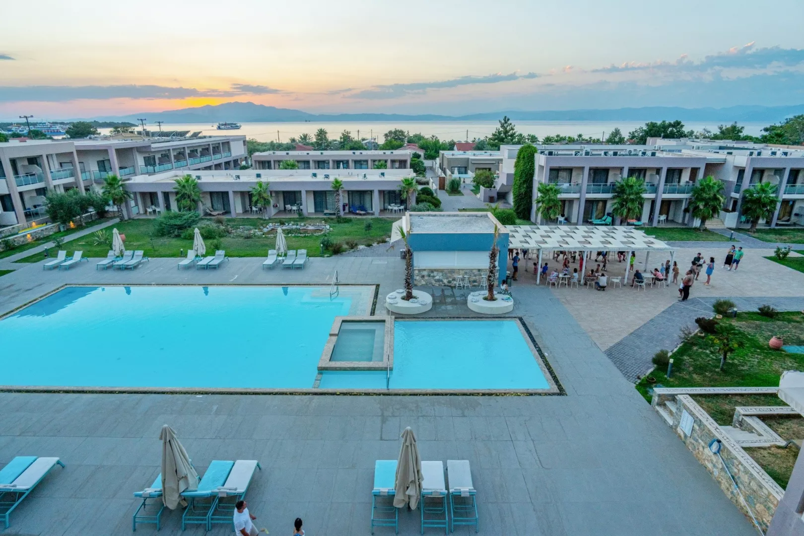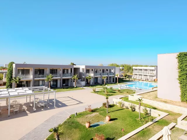 Hotelový komplex sa nachádza približne 1 km od Skala Prinos v pokojnej lokalite pri pláži. Prístav Limenas (spojenie s letiskom Kavala) je vzdialený približne 12 km. Letisko Kavala je vzdialené približne 40 km.