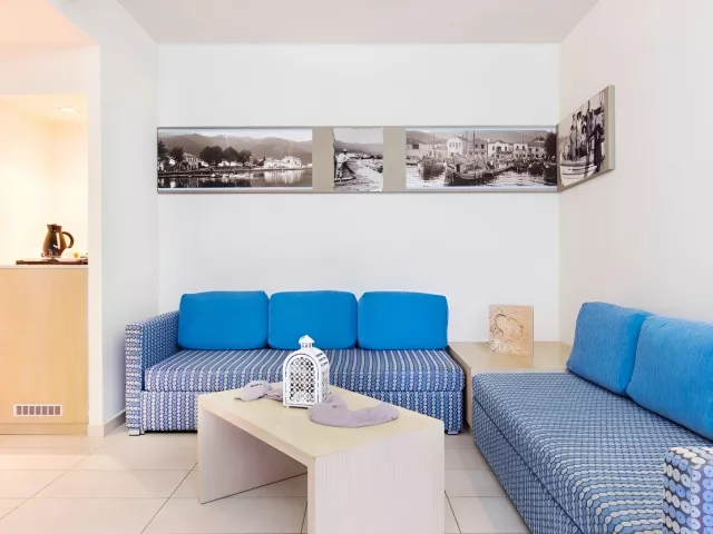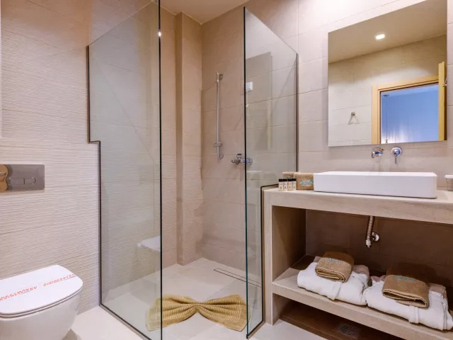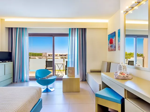 Dvojlôžková izba : kúpeľňa/WC (sušič vlasov), klimatizácia, telefón, TV/sat, chladnička, trezor (zadarmo), balkón alebo terasa, väčšina izieb s výhľadom na bazén. Ostatné typy izieb (ak nie je uvedené inak, všetky izby majú vyššie uvedené vybavenie) Junior Suite: priestrannejšia, opticky oddelená spálňa Rodinná izba: priestrannejšia, oddelená spálňa, dve TV/sat.,2 kúpeľne, k izbe patrí gazebo na pláži. Junior Suita, Súkromný bazén: priestrannejšia, opticky oddelená spálňa, vlastný bazén, k izbe patrí gazebo na pláži. Family Junior Suita: priestrannejšia, oddelená spálňa, dve TV/sat.,2 kúpeľne, k izbe patrí gazebo na pláži. Suita, Executive, Luxury, Zdieľaný bazén: priestrannejšia, oddelená spálňa, 2 kúpeľne, zdieľaný bazén, k izbe patrí gazebo na pláži.