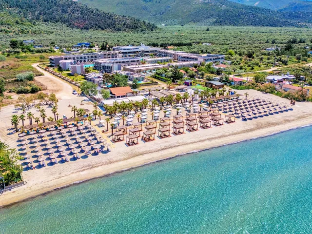 Dlhá piesočnatá pláž s pozvoľným vstupom do mora, vhodná pre deti. Ležadlá a slnečníky pre hotelových hostí zadarmo.