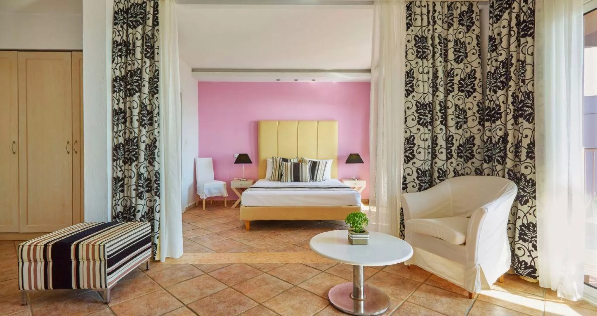 Dvojlôžková izba je vybavená kúpeľňou/WC (sušič vlasov), klimatizáciou (za poplatok), telefónom, TV/SAT, trezorom a chladničkou. Každá izba má balkón alebo terasu s výhľadom na okolie.