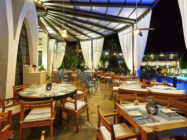Hotel ponúka 137 izieb rozmiestnených v 8 budovách zasadených v udržiavanej záhrade. Zariadenie obsahuje vstupnú halu s recepciou, konferenčné centrum, reštauráciu à la carte a tri bary. K dispozícii je vonkajší bazén s detským bazénikom, ako aj bar pri bazéne. Ležadlá a slnečníky pri bazéne sú poskytované zdarma. Piesočnatá pláž sa nachádza priamo pri hoteli a ležadlá a slnečníky sú na pláži taktiež bezplatné.