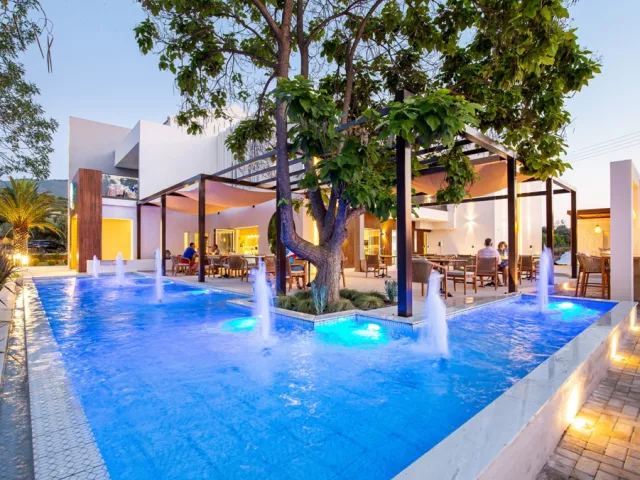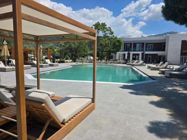 Hotel disponuje vstupnou halou s recepciou, útulnou reštauráciou, bazénom a barom pri bazéne, čo poskytuje pohodlné a príjemné prostredie na oddych.