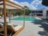 Pláž je kombinovaná, s piesočnatou a štrkovou časťou, poskytujúc ležadlá a slnečníky za poplatok. Ideálne miesto na oddych pri mori.