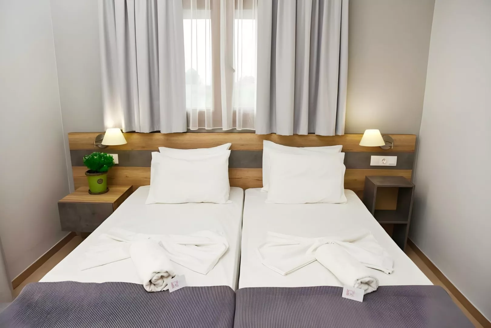 Dvojlôžková izba, Superior: kúpeľňa/WC (sušič vlasov) klimatizácia (zadarmo) telefón TV/sat. wifi (zadarmo) trezor minichladnička balkón alebo terasa Ostatné typy izieb (pokiaľ nie je uvedené inak, majú izby vyššie uvedené vybavenie) Štvorlôžková izba, Superior: prístelky formou poschodovej postele