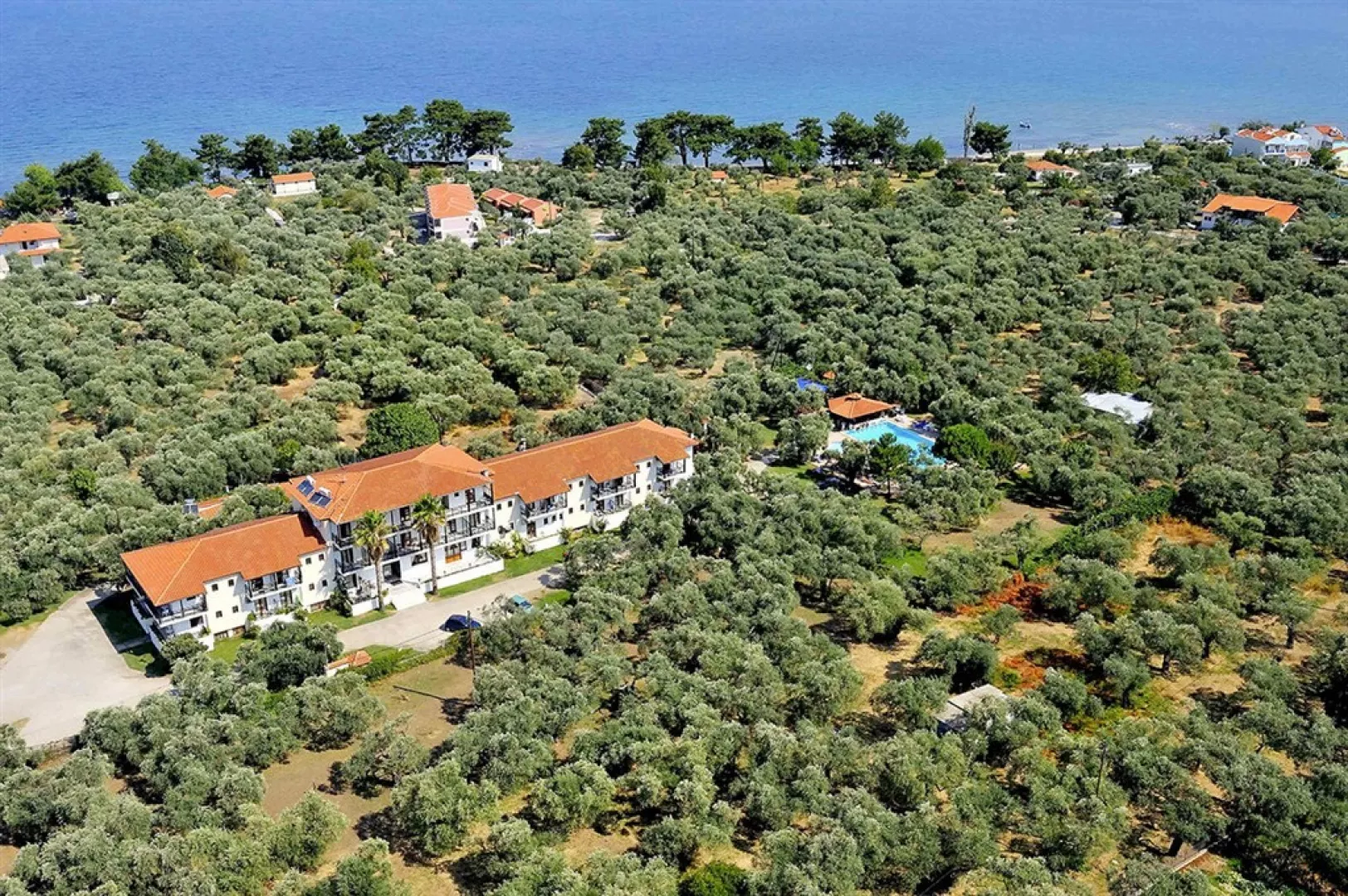 Hotel Coral je situovaný v olivovom háji v pokojnej oblasti Skala Rachoni, len 300 metrov od piesočnatej pláže. Centrum letoviska je vzdialené približne 1,4 km, nákupné možnosti sú dostupné do 650 m a letisko Kavala sa nachádza 37 km od hotela.