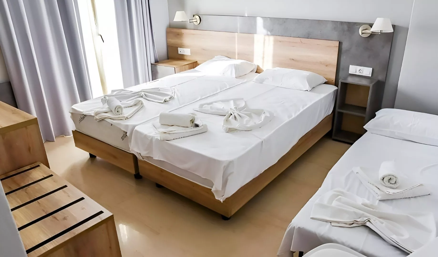 Dvojlôžková izba Superior je vybavená vlastnou kúpeľňou/WC (so sušičom vlasov), klimatizáciou (zdarma), telefónom, TV so satelitným príjmom, bezplatným wifi pripojením, trezorom a minichladničkou. V izbách je aj balkón alebo terasa. Ostatné typy izieb, ako štvorlôžková izba Superior, sú vybavené podobne, s prístelkami vo forme poschodovej postele.