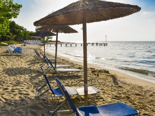 Pláž je piesočnatá a nachádza sa 300 m od hotela. Ležadlá a slnečníky sú za poplatok, podobne ako prístup k plážovému baru.