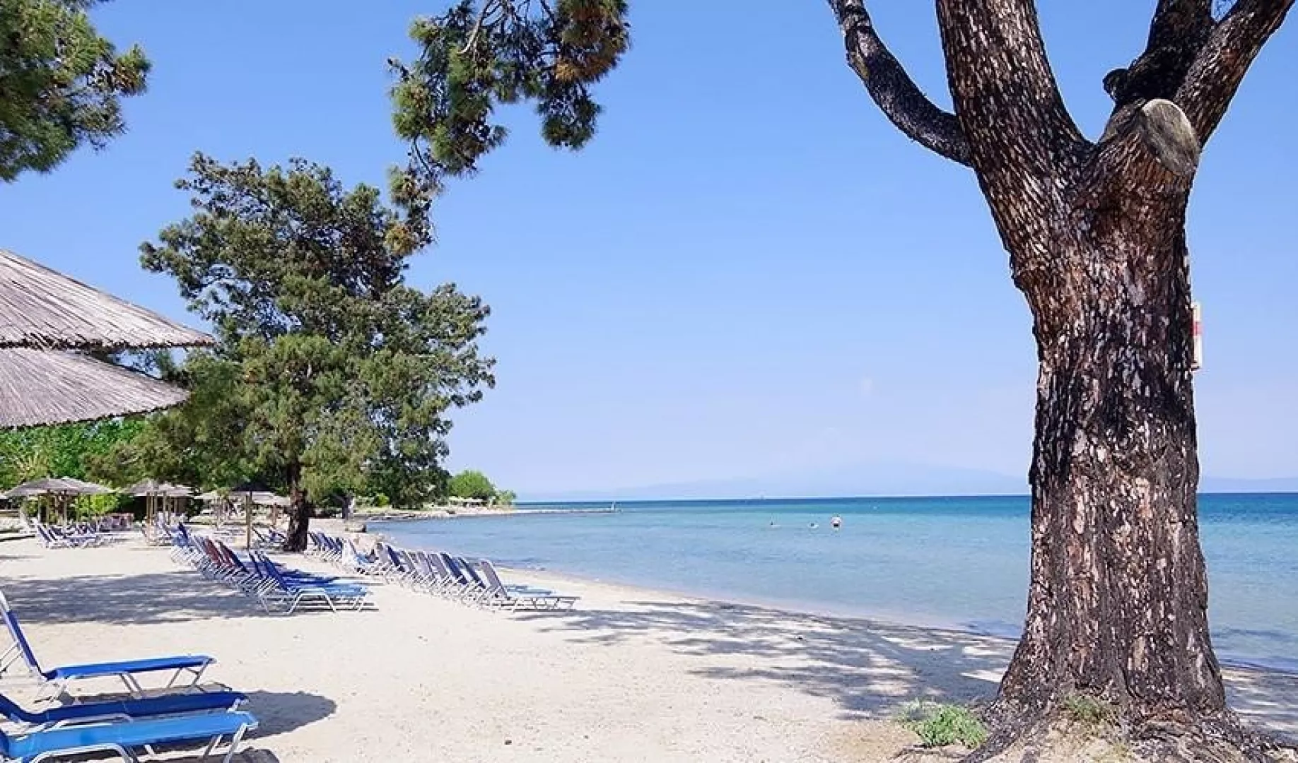 Piesočnatá pláž s okruhliakmi sa nachádza približne 300 m od hotela a má pozvoľný vstup do mora. Bar na pláži je dostupný pri sesterských hoteloch Rachoni Bay a Rachoni Imperial a je súčasťou all inclusive ponuky.