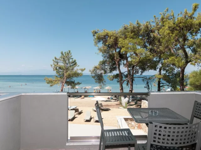 Novostavba hotela sa nachádza na pokojnom mieste v oblasti Skala Rachoni, približne 500 m od centra. Najbližšie obchody a reštaurácie sú vzdialené približne 150 metrov. Letisko v Kavale je vzdialené približne 36 km, hlavné mesto Limenas je vzdialené 12 km.