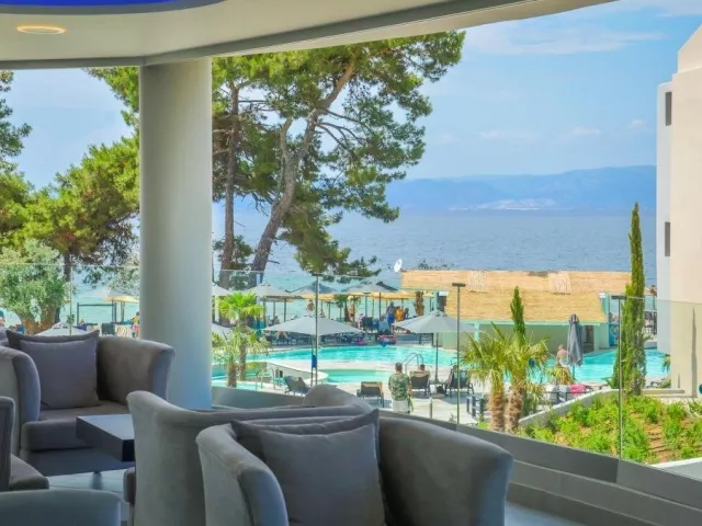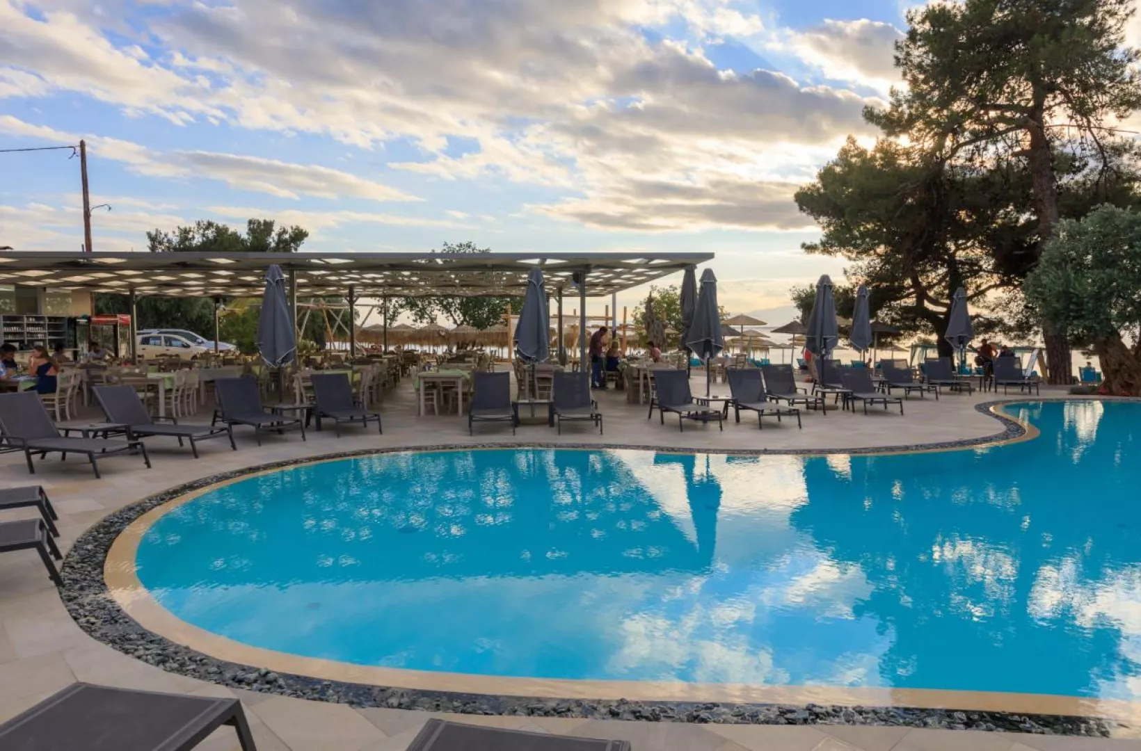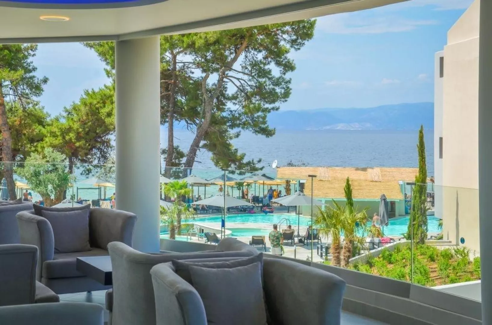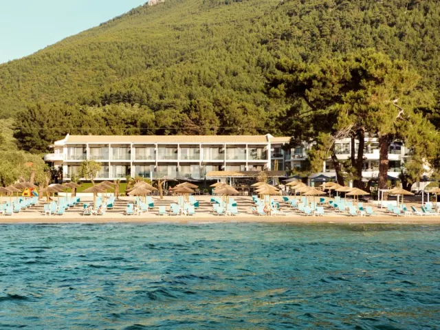 Hotel sa nachádza na severnom pobreží ostrova, v blízkosti centra Skala Rachoni. Hlavné mesto Limenas je vzdialené asi 15 km a od prístavu Prinos je to približne 4 km. Letisko Kavala je vzdialené 35 km od hotela.