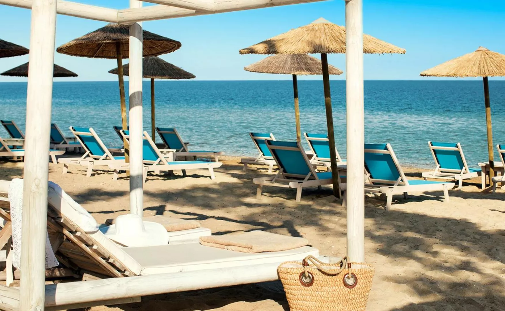 Priamo pri hoteli sa nachádza pekná piesočnatá pláž s pozvoľným vstupom do mora. Ležadlá a slnečníky sú na pláži k dispozícii bez poplatku.
