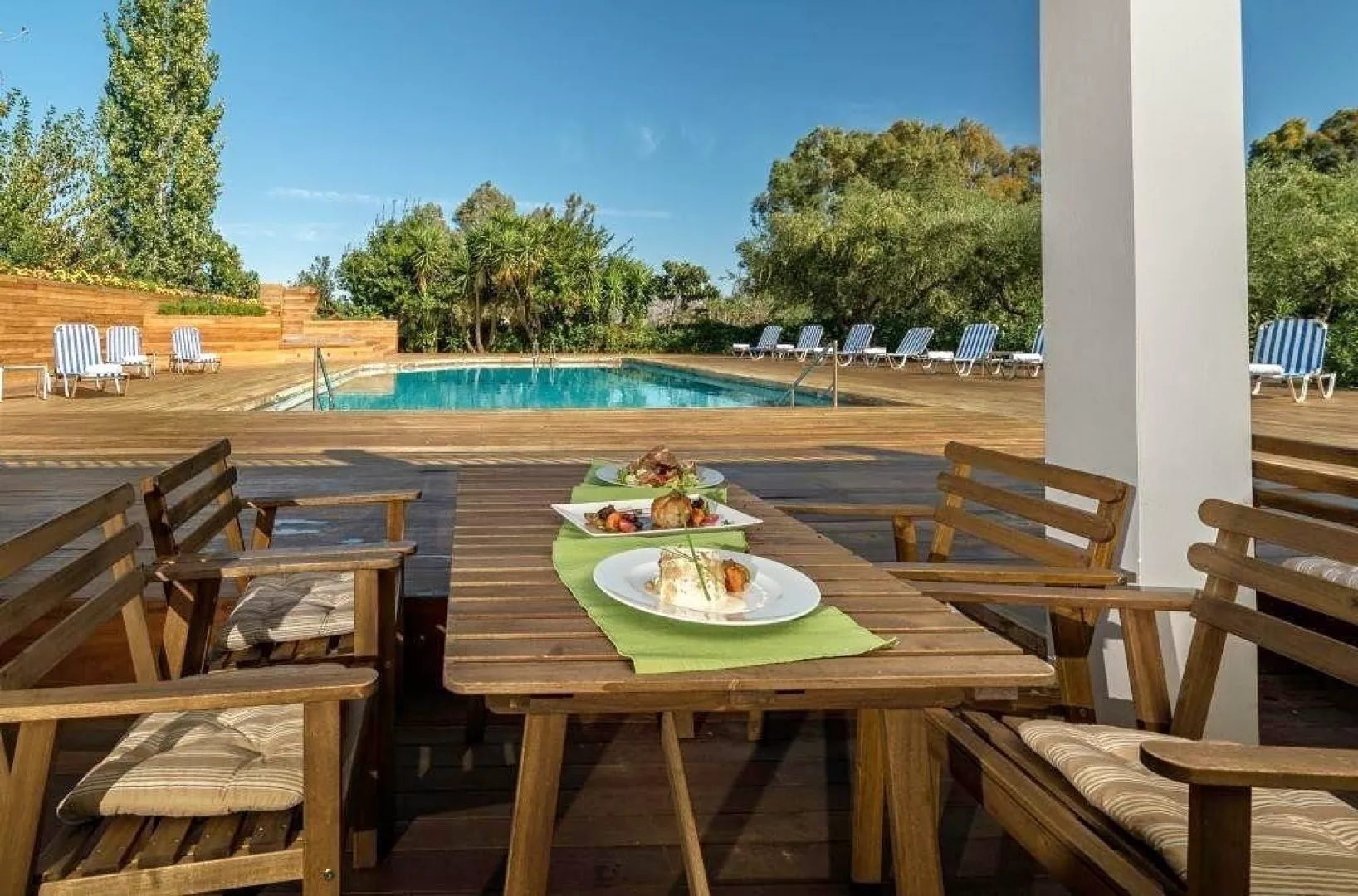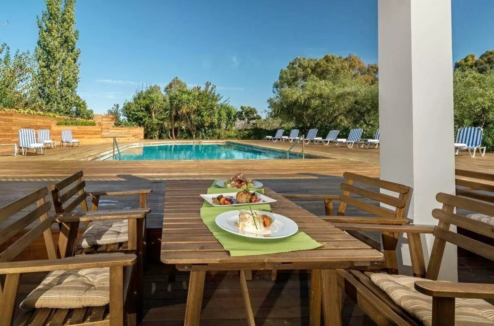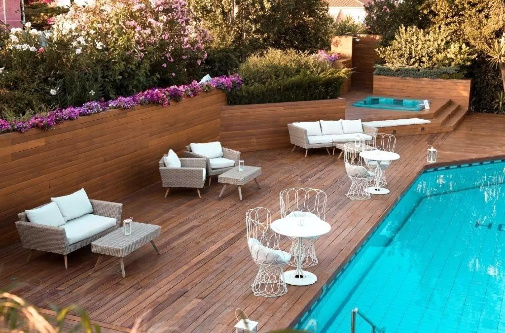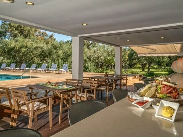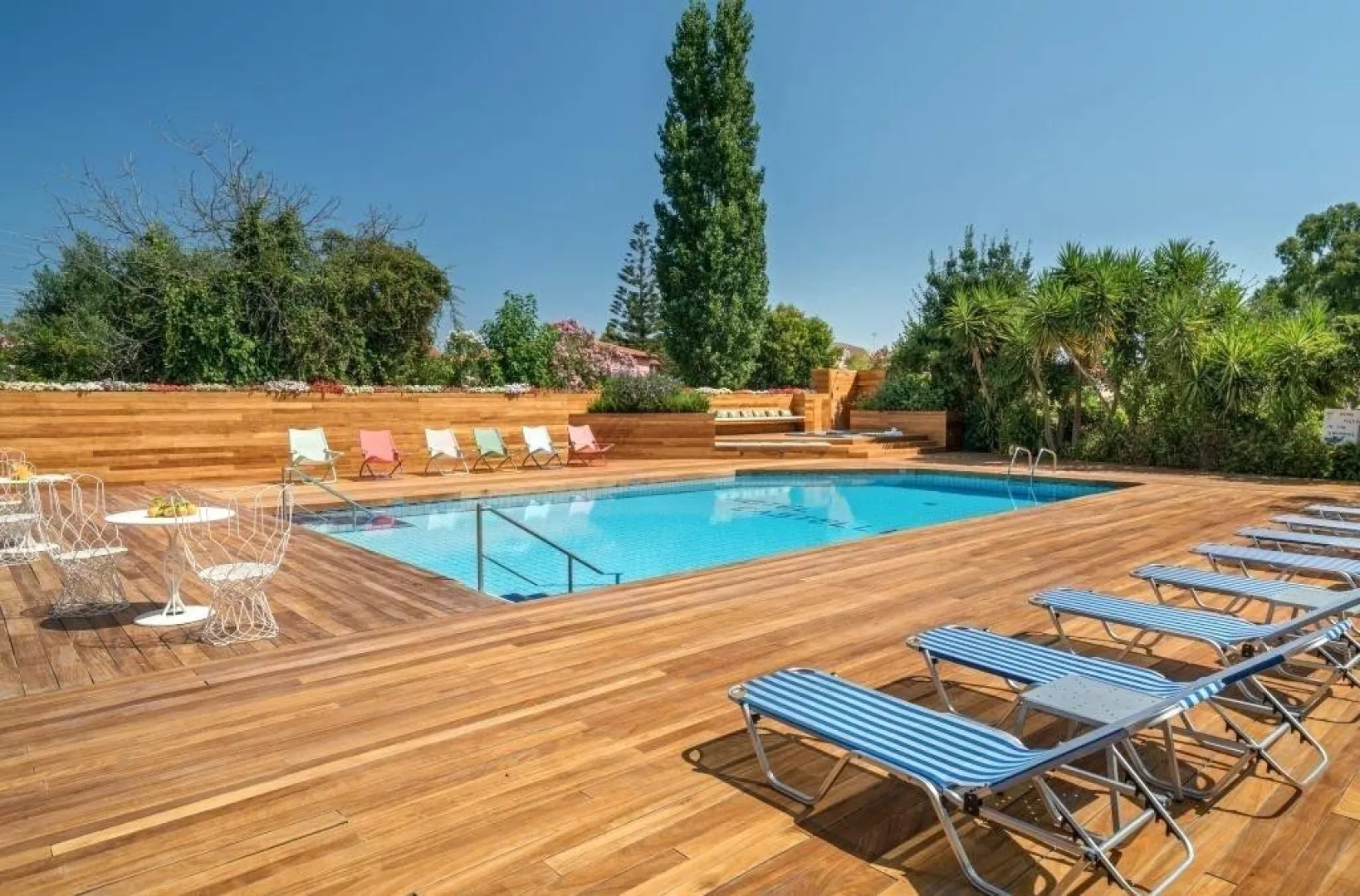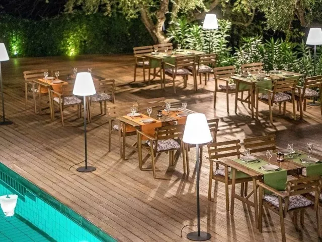 54 zrenovovaných izieb v hlavnej budove, vstupná hala s recepciou, reštaurácia pre podávanie raňajok, lobby bar, malá knižnica. Vonku bazén, terasa s ležadlá a slnečníkmi zadarmo, plážové osušky za poplatok, bar pri bazéne.