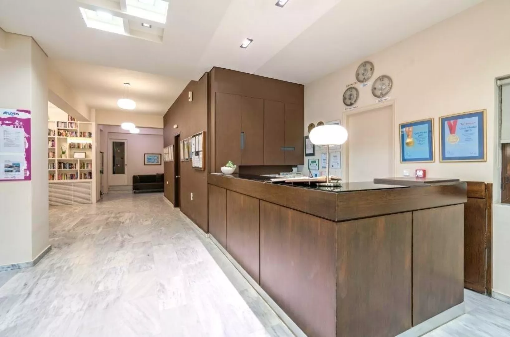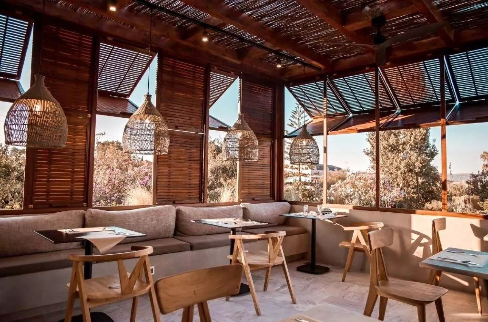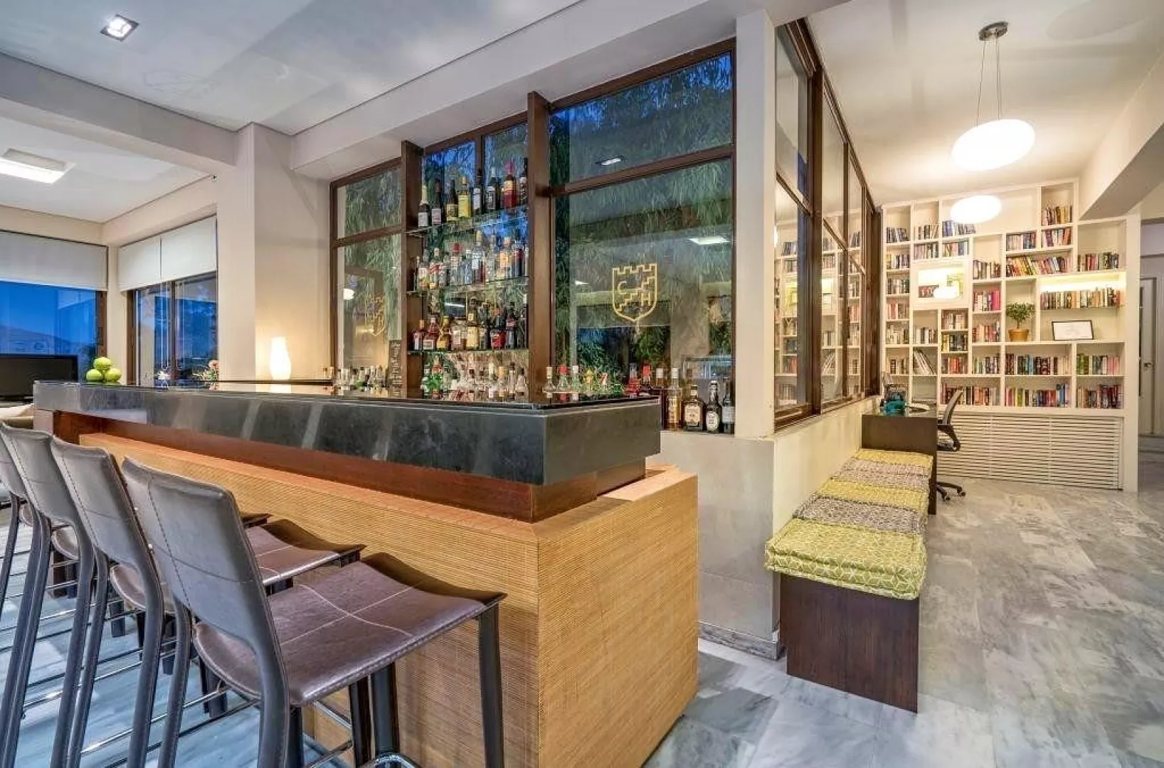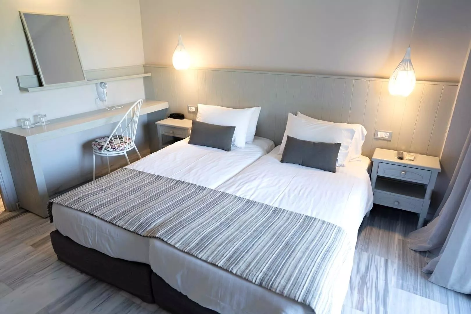 54 zrenovovaných izieb v hlavnej budove, vstupná hala s recepciou, reštaurácia pre podávanie raňajok, lobby bar, malá knižnica. Vonku bazén, terasa s ležadlá a slnečníkmi zadarmo, plážové osušky za poplatok, bar pri bazéne.