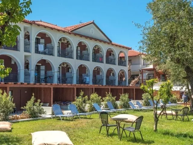 V zeleni na okraji letoviska Laganas cca 12 km od hlavného mesta Zakynthos. Centrum letoviska Laganas s mnohými obchodmi, reštauráciami a barmi cca 500 m.