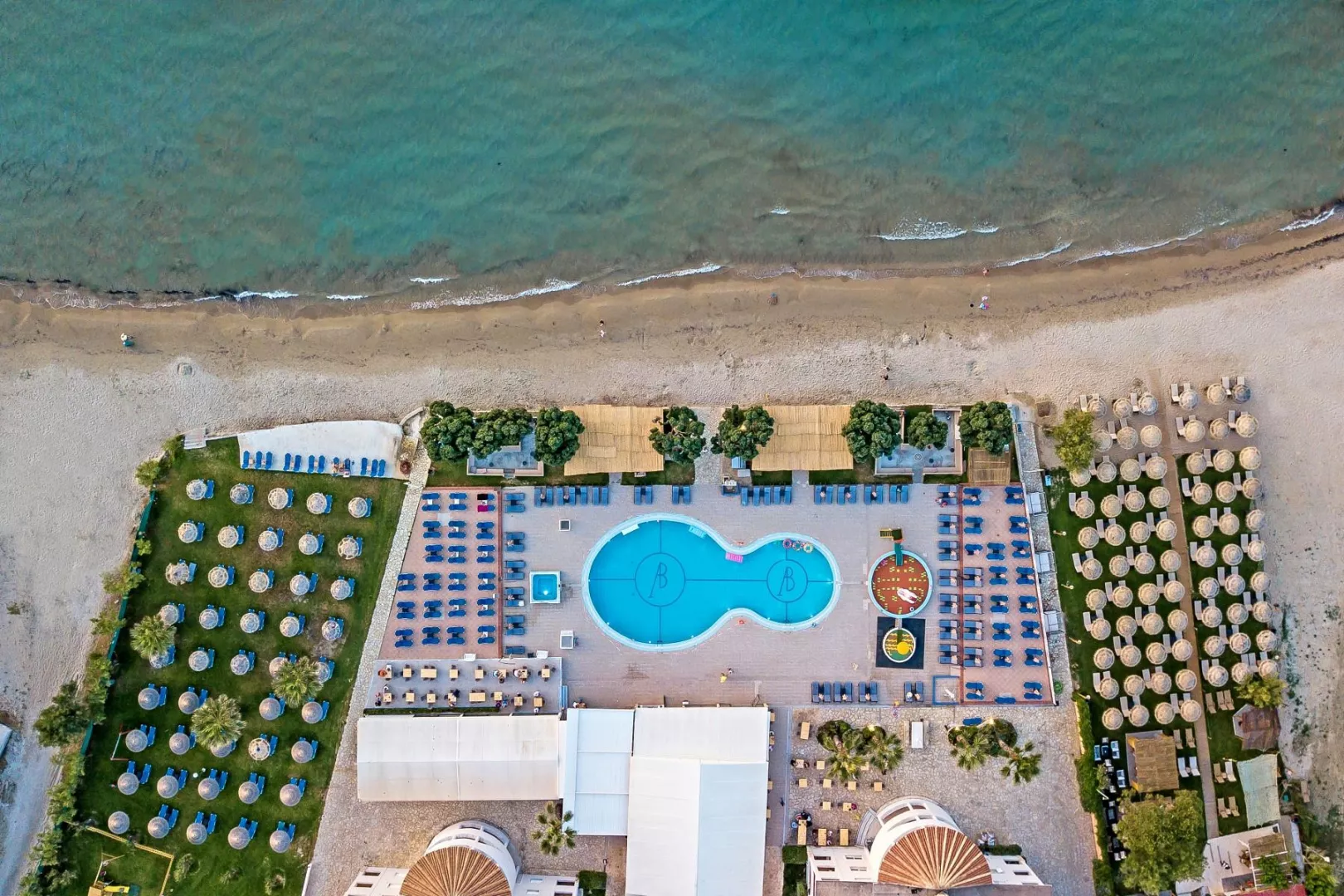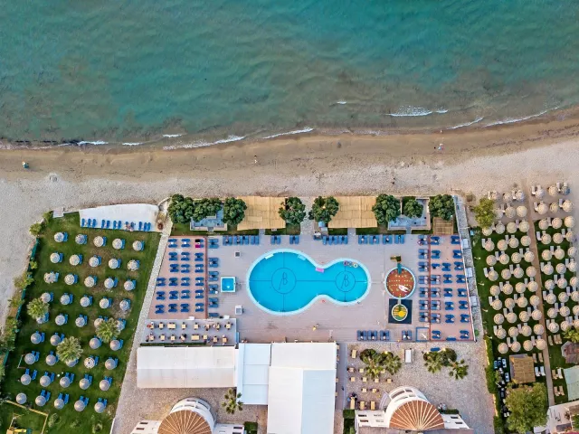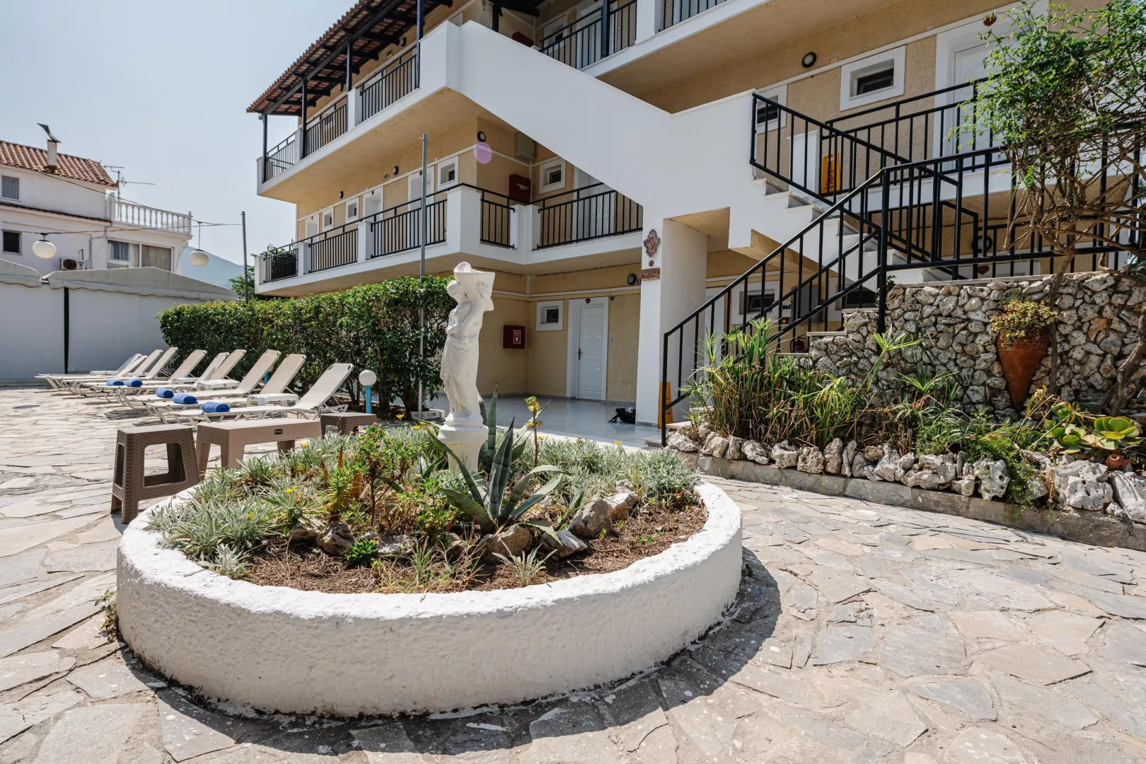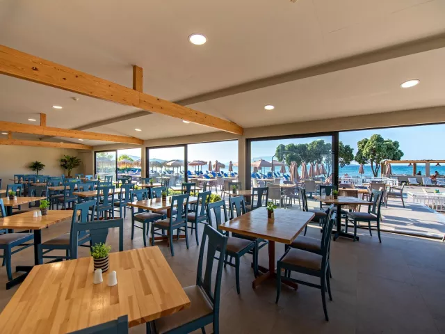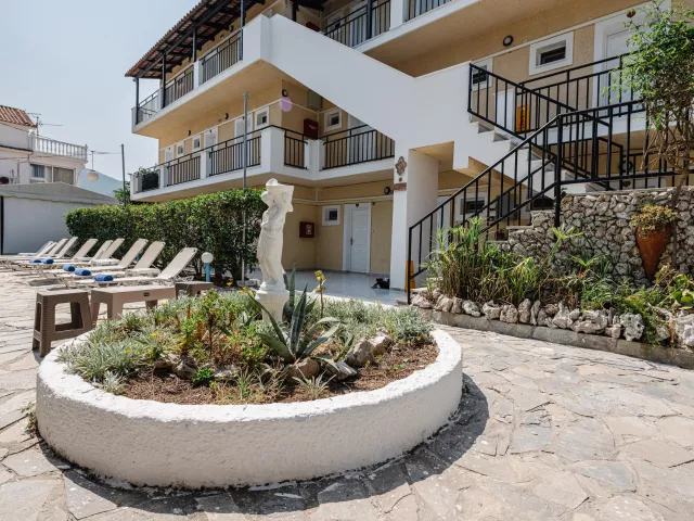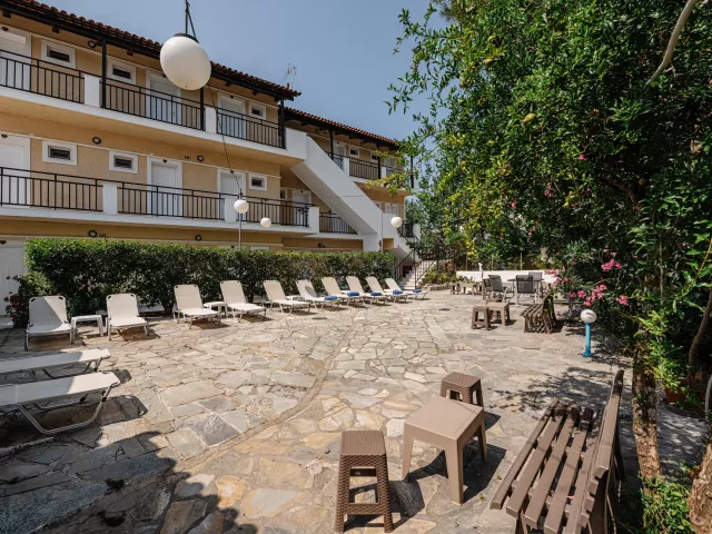 Hotel má vstupnú halu s recepciou, reštauráciu a lobby bar. Okrem hlavnej budovy sa nachádza aj vedľajšia budova (annex) vzdialená cca 200 m od mora. Vonku je k dispozícii bazén, bar pri bazéne, terasa so slnečníkmi a lehátkami, ktoré sú zdarma.