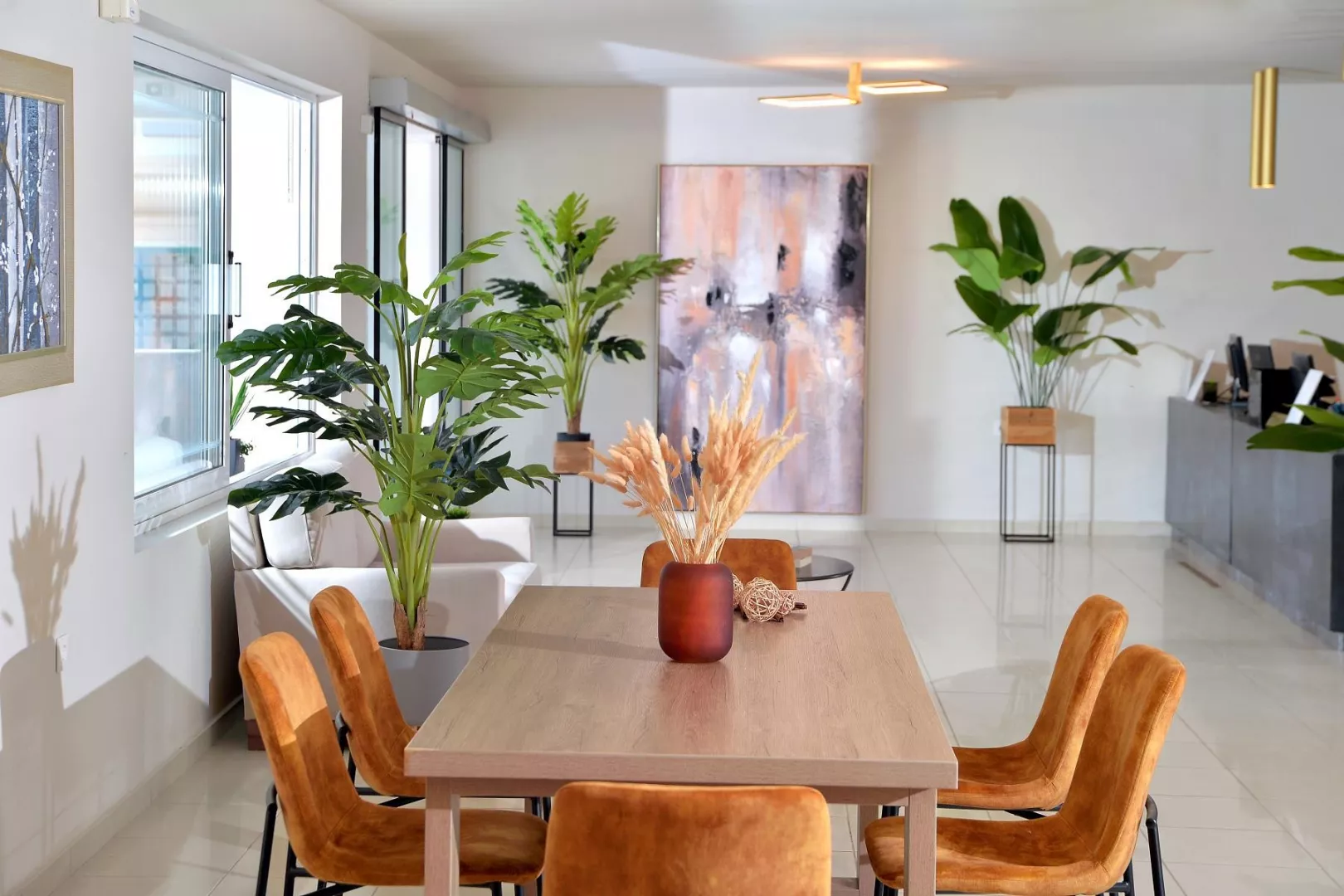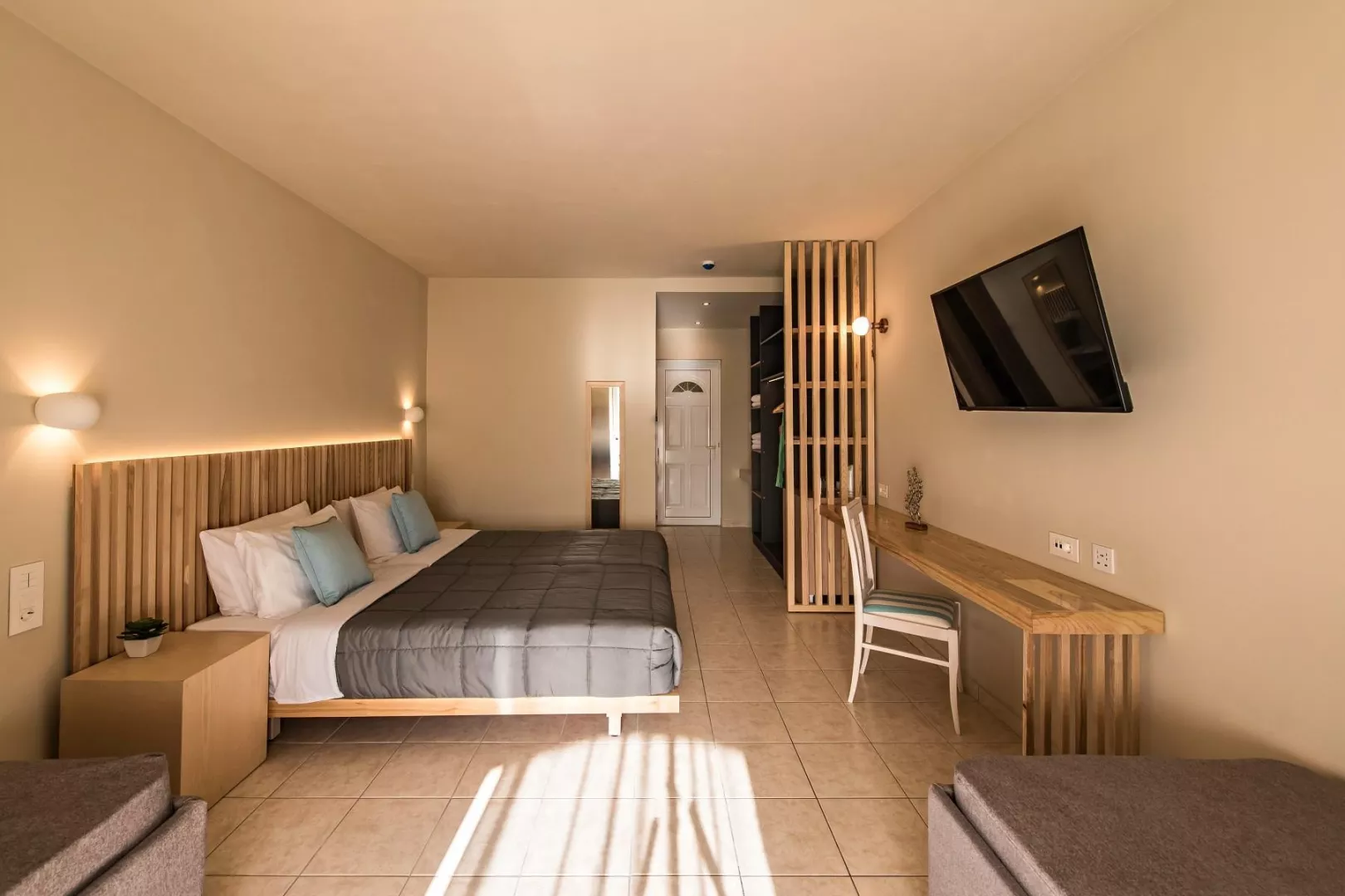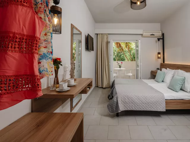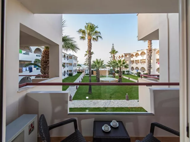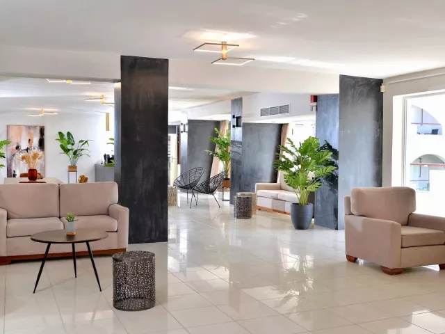 Hotel má vstupnú halu s recepciou, reštauráciu a lobby bar. Okrem hlavnej budovy sa nachádza aj vedľajšia budova (annex) vzdialená cca 200 m od mora. Vonku je k dispozícii bazén, bar pri bazéne, terasa so slnečníkmi a lehátkami, ktoré sú zdarma.