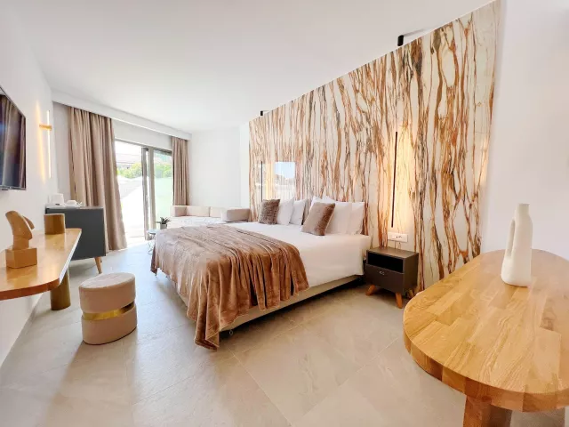 Dvojlôžková izba je vybavená kúpeľňou/WC (sušič vlasov), klimatizáciou (za poplatok), TV so satelitným príjmom, trezorom a telefónom (obe za poplatok), mini chladničkou a balkónom alebo terasou. Sú dostupné aj ďalšie typy izieb vrátane priestrannejších rodinných izieb.