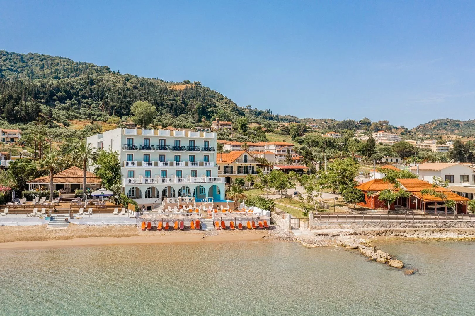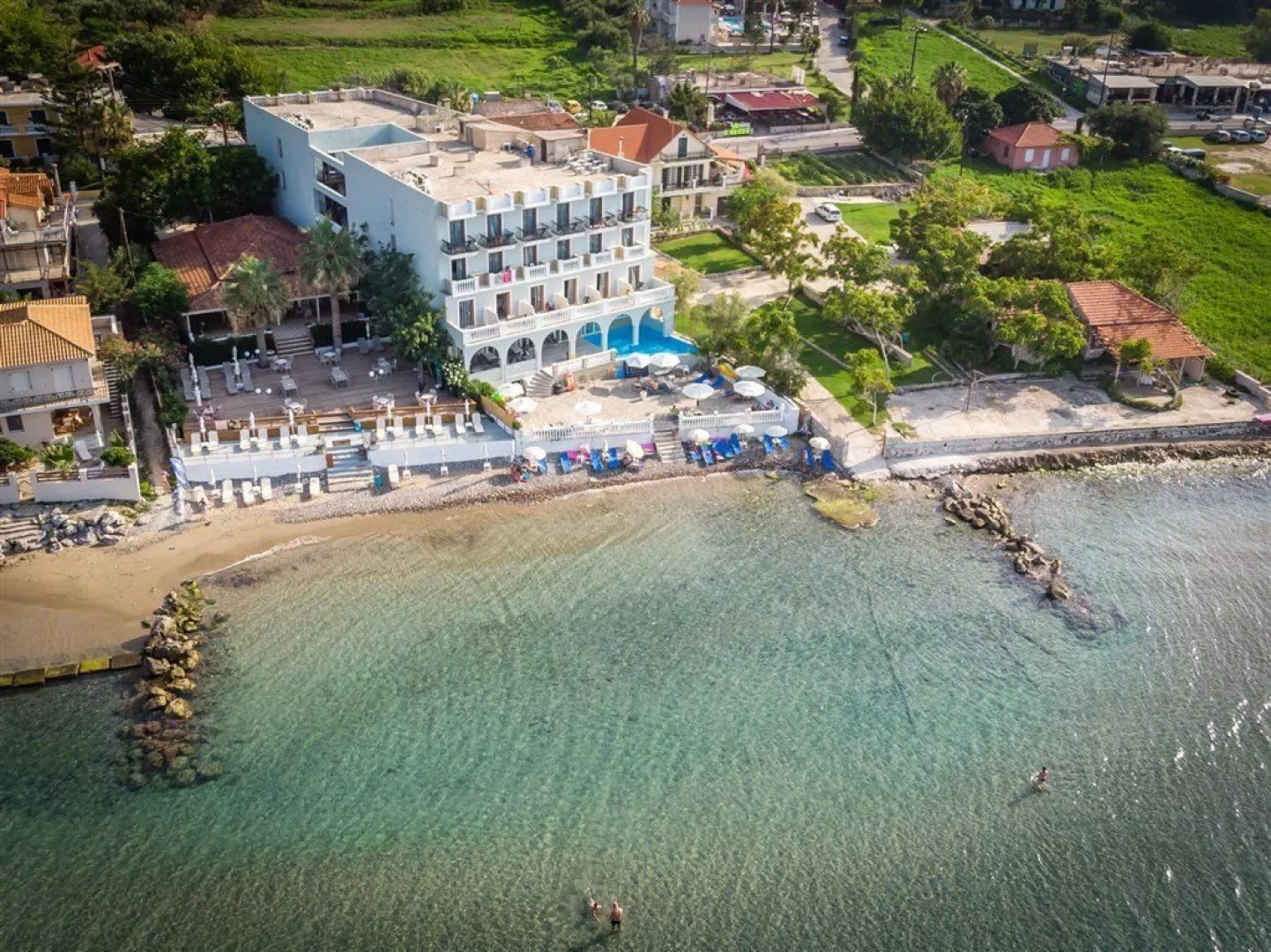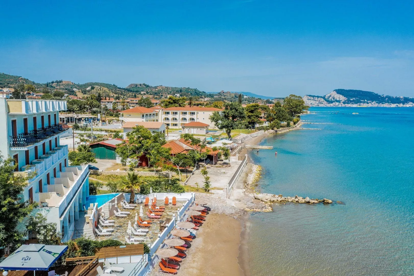 Hotel sa nachádza približne 100 metrov od centra strediska, kde sú bary, reštaurácie a obchody. Mesto Zakynthos je vzdialené asi 5 km a letisko je 6 km ďaleko. Z dôvodu výškových rozdielov terénu sa neodporúča osobám s obmedzenou pohyblivosťou.
