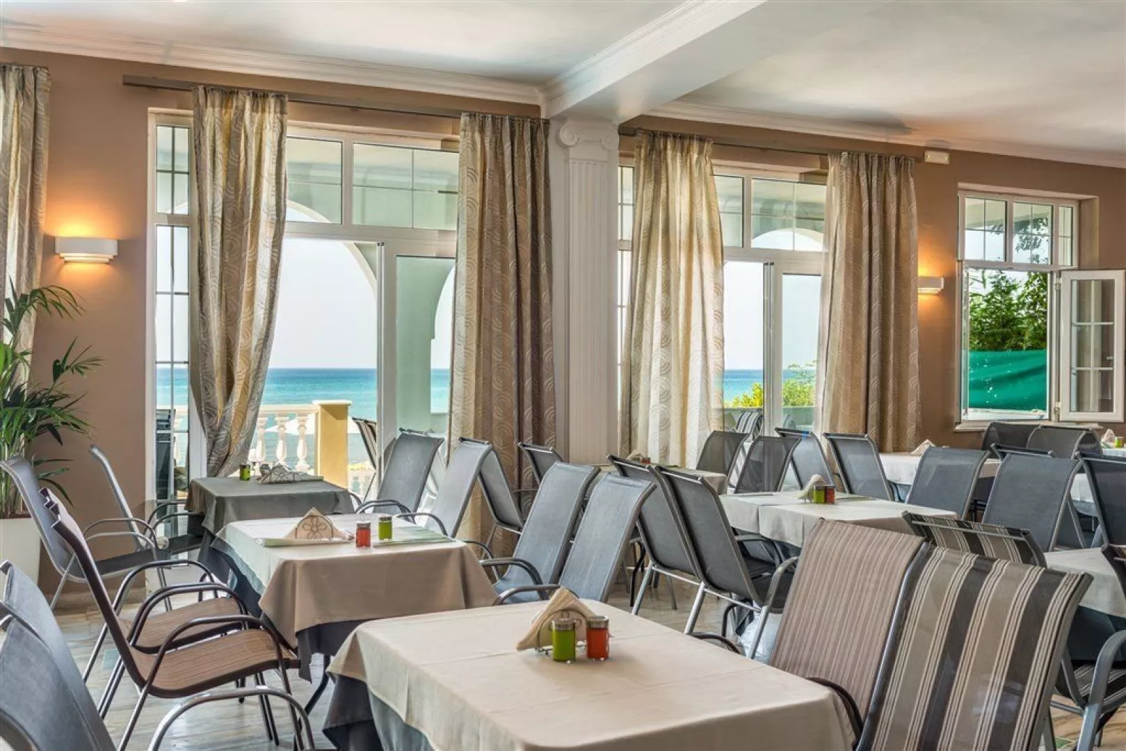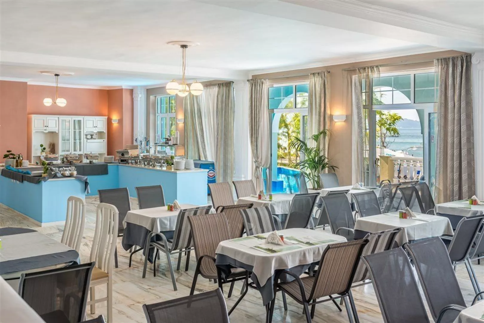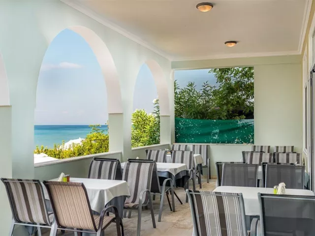 Hotel disponuje vstupnou halou, recepciou, reštauráciou, barom s terasou s výhľadom na more, bezplatným WiFi, terasou s menším bazénom, pričom lehátka a slnečníky sú tiež zdarma.