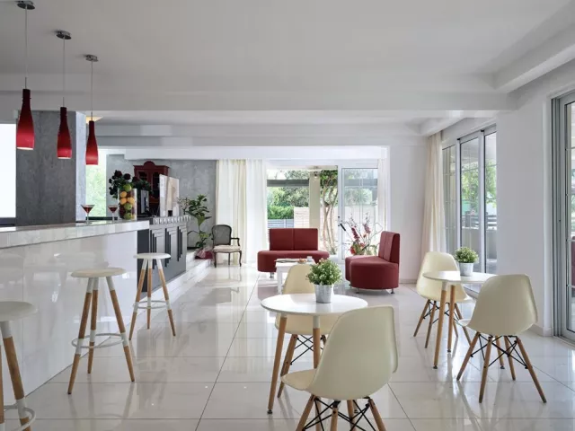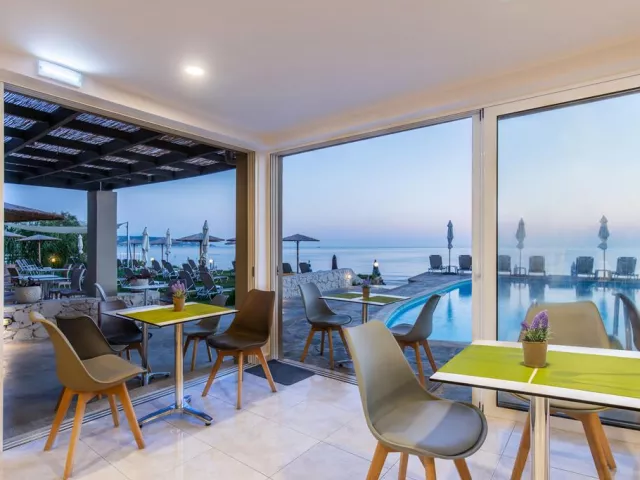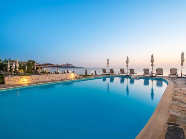 SLUŽBY: bazény so slnečníkmi a ležadlami • 24 hodinová recepcia • reštaurácia • lobby bar • pool snack bar • beach snack bar • tematické večery • grécka živá hudba a tanec (1x/týždeň) • centrálny trezor • stolný tenis • TV kútik • internetový kútik • úschovňa batožiny • parkovisko • wifi vo verejných priestoroch • za poplatok: biliard • obchody