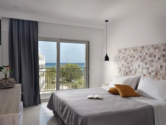 IZBY: 75 izieb • balkón alebo terasa • individuálna klimatizácia (6€/deň) • trezor • SAT TV • minichladnička • set na prípravu kávy a čaju • sušič na vlasy • wifi • promo izby: 22-25 m², max. pre 2 osoby • štandardné izby: 22-25 m², max. pre 2+1 osoby, s výhľadom do záhrady, na bazén alebo na more