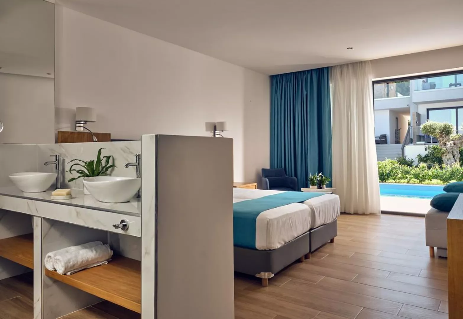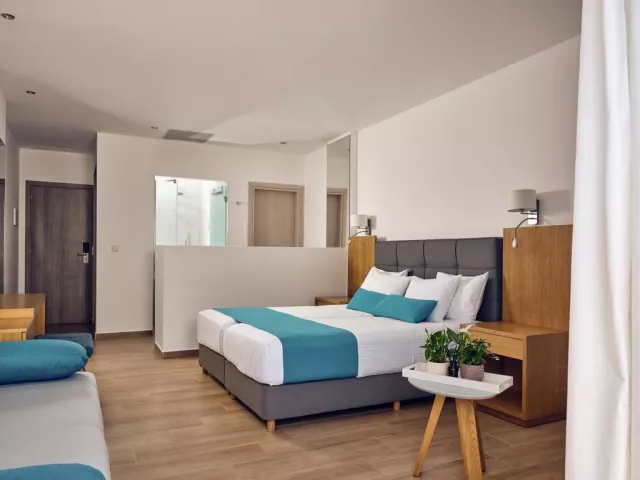 IZBY: 110 izieb • balkón alebo terasa • individuálna klimatizácia • SAT TV • minichladnička • telefón • trezor • sušič na vlasy • rýchlovarná kanvica • set na prípravu káva a čaju • wifi • deluxe izby: 29 m², max. pre 2+2 alebo 3+1 osoby • superior izby: 29 m², max. pre 2+2 alebo 3+1 osoby, priamy vstup do bazéna • junior suity s výhľadom na bazén alebo na more: 34 m², max. pre 2+2 osoby • junior suity: 34 m², max. pre 2+2 osoby, priamy vstup do bazéna • suity: 40 m², max. pre 2+2 osoby, 1 spálňa a 1 obývacia izba • suity: 40 m², max. pre 4 osoby, 1 spálňa a 1 obývacia izba, priamy vstup do bazéna • luxury suity s výhľadom na more: 40 m², max. pre 2+2 osoby, 1 spálňa a 1 obývacia izba • luxury suity: 40 m², max. pre 2+2 osoby, 1 spálňa a 1 obývacia izba, priamy vstup do bazéna • deluxe suity: 40 m², max. pre 2+2 osoby, 1 spálňa a 1 obývacia izba, izby oddelené dverami, priamy vstup do bazéna