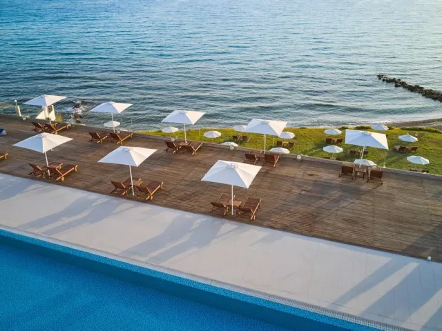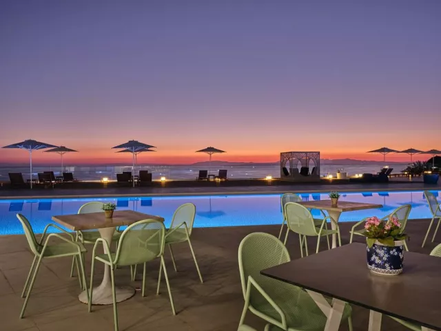 SLUŽBY: bazén so slnečníkmi a ležadlami • jacuzzi • opaľovacia terasa • plážové osušky • 24 hodinová recepcia • hlavná reštaurácia • lobby bar • pool-snack bar • večerná show • grécke večery • živá hudba • wifi v celom areáli hotela • za poplatok: SPA centrum • masáže • lekárska služba • fitness • joga • manikúra a pedikúra • kozmetické procedúry • vodné športy na pláži • práčovňa • zmenáreň