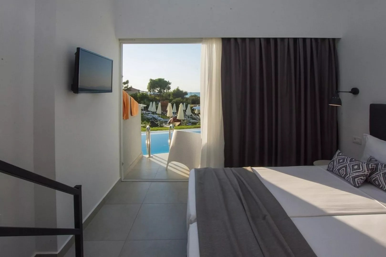 Dvojlôžkové izby s možnosťou jednej prístelky sú vybavené vlastným sociálnym zariadením (sprchový kút, fén, WC), telefónom, WiFi, chladničkou, klimatizáciou a SAT/TV. K dispozícii sú aj rodinné izby a junior suity pre maximálne 4 osoby, pričom junior suit má rozlohu 30 m². Izby Swim up ponúkajú priamy vstup do spoločného bazéna pre viac izieb.