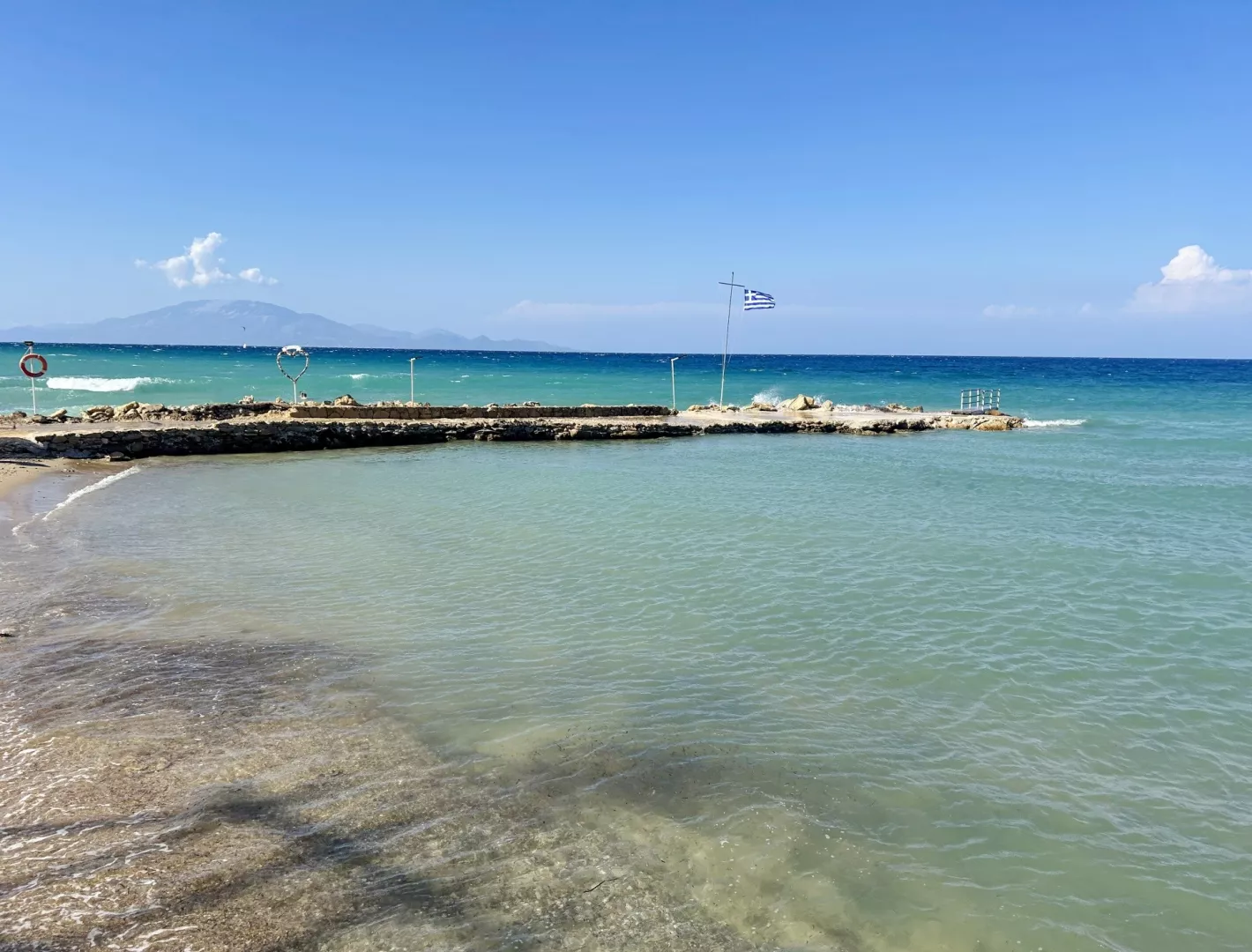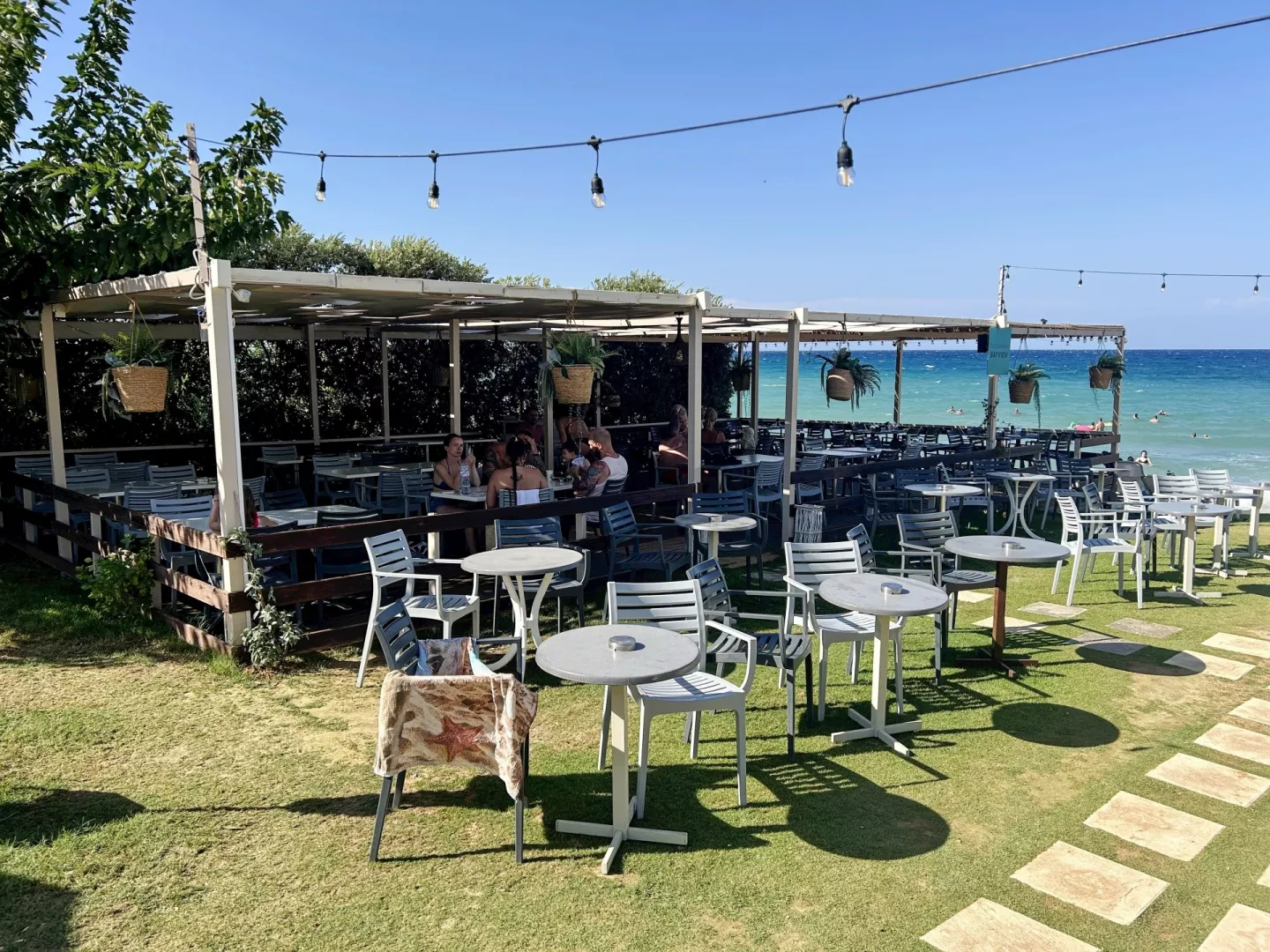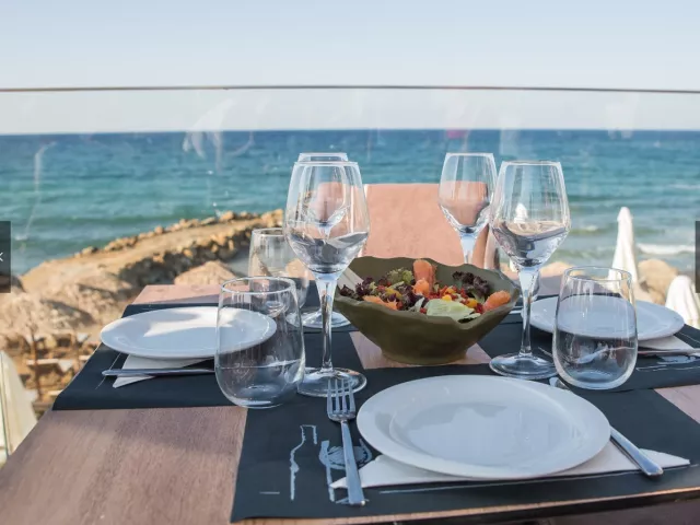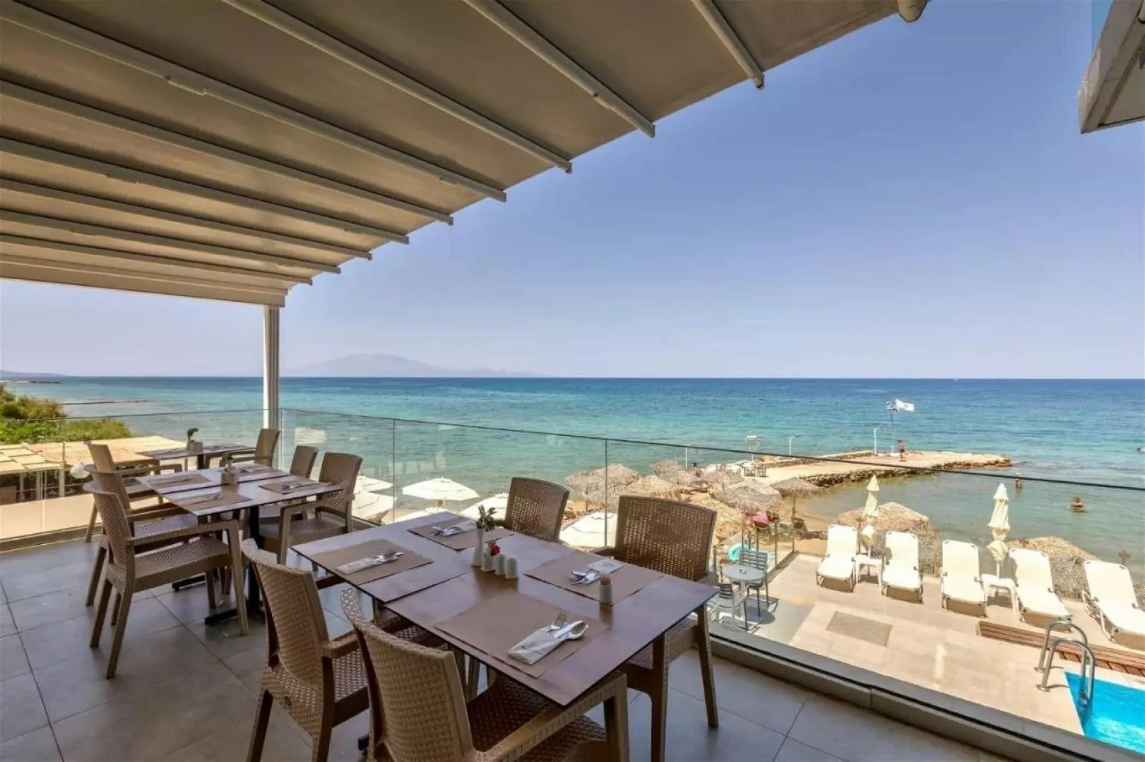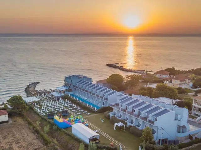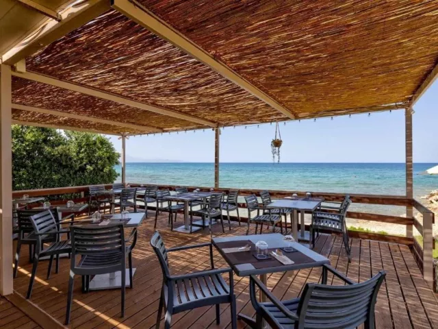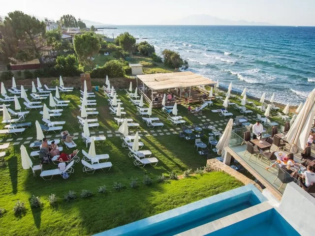 Priamo pri hoteli sa nachádza verejná okruhliakovo-kamenistá pláž s pozvoľným vstupom do mora, kde sa odporúča mať obuv do vody. Lehátka na pláži sú za príplatok.