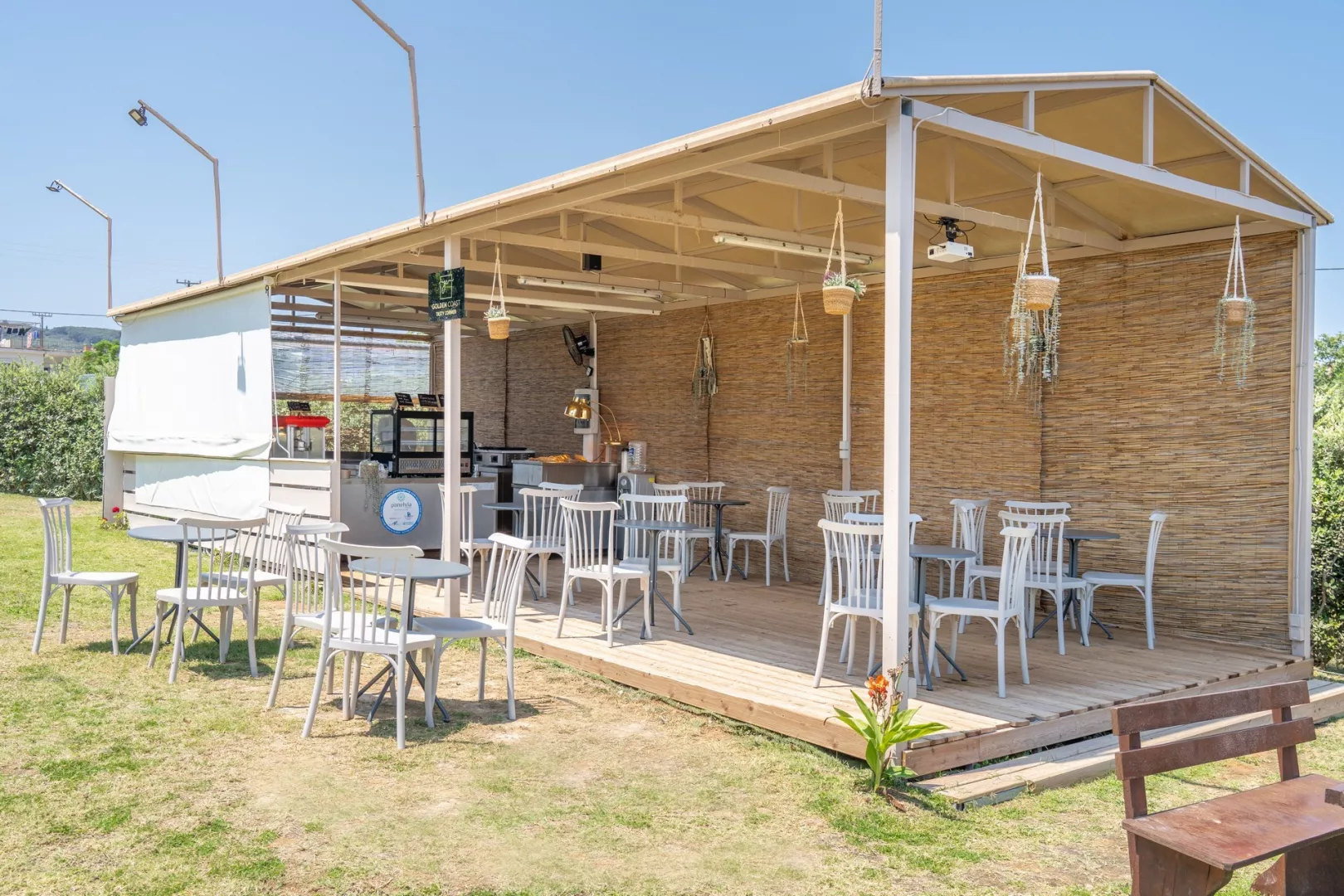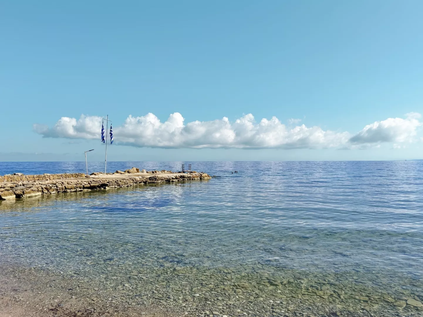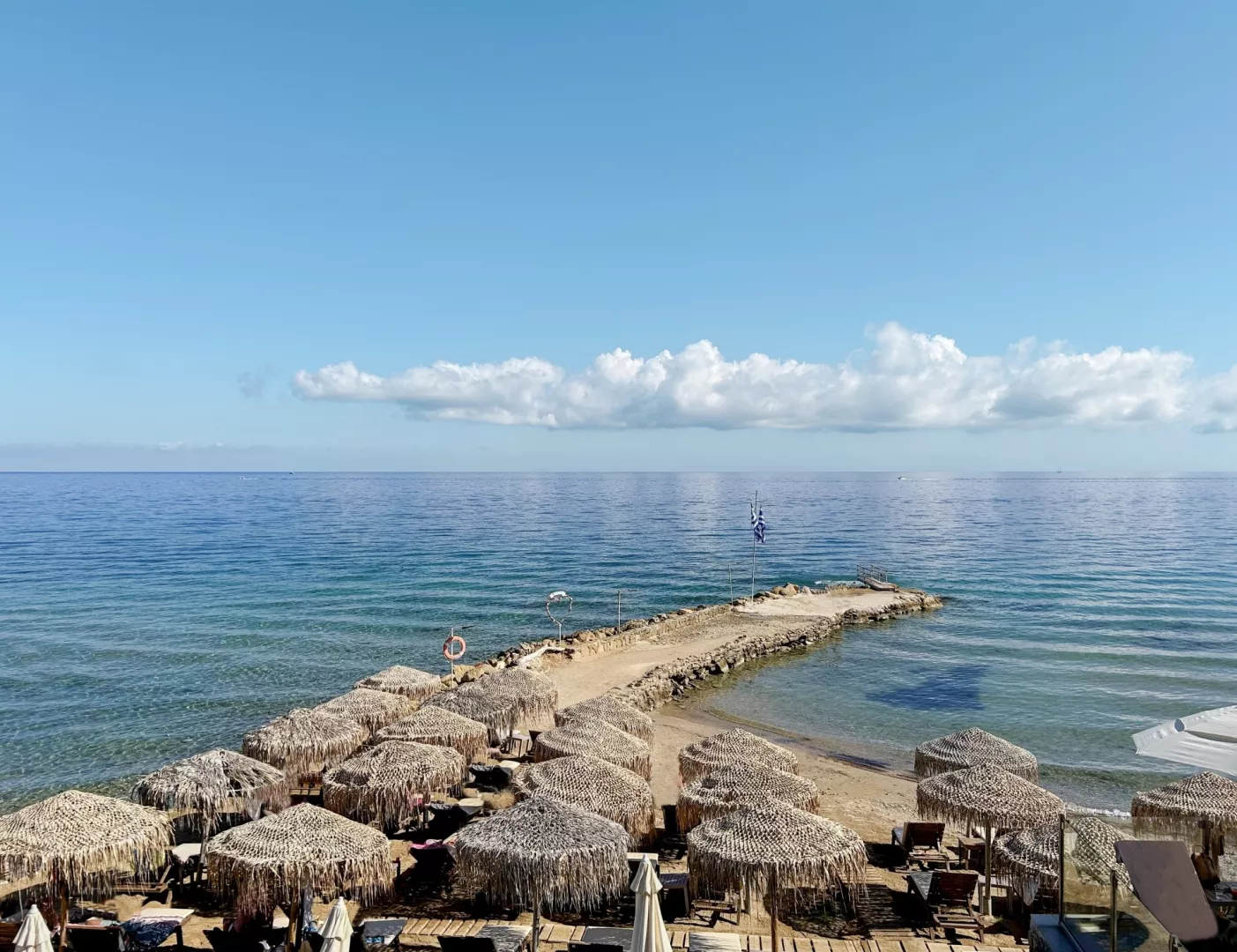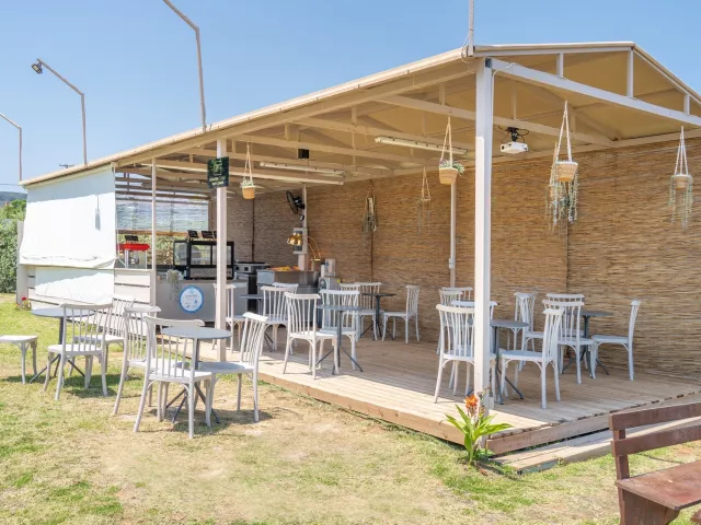 Priamo pri hoteli sa nachádza verejná okruhliakovo-kamenistá pláž s pozvoľným vstupom do mora, kde sa odporúča mať obuv do vody. Lehátka na pláži sú za príplatok.