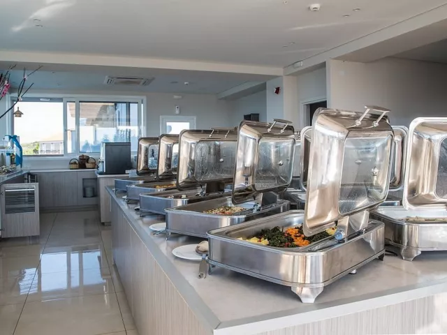All inclusive služba zahŕňa bohaté raňajky, obedy a večere formou bufetu v hlavnej reštaurácii. Miestne alkoholické a nealkoholické nápoje sú k dispozícii v určených časoch a miestach.