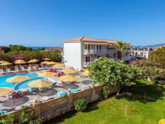 Hotel sa nachádza v pokojnej časti rezortu Kalamaki, obklopený zeleňou, len 300 m od krásnej piesočnatej pláže s pozvoľným vstupom do mora. V blízkosti sú reštaurácie a obchody so suvenírmi. Centrum letoviska je vzdialené približne 350 m a rušné letovisko Laganas je len 4 km ďaleko. Hlavné mesto Zakynthos je vzdialené 6 km, pričom je dostupné pravidelným autobusom.