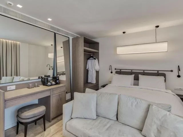 Štandardné dvojlôžkové izby s výhľadom na mesto sú vybavené manželskou posteľou alebo oddelenými lôžkami, klimatizáciou, telefónom, mini chladničkou, SAT/TV, setom na prípravu kávy a čaju, a bezpečnostnou schránkou (za poplatok). Za príplatok sú k dispozícii izby s bočným výhľadom na more a priestranné Executive izby s možnosťou prístelky a kávovarom Nespresso. Všetky izby majú terasu alebo balkón.