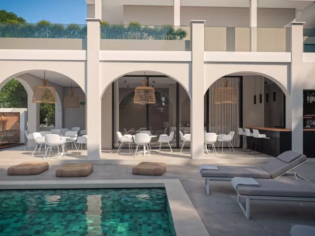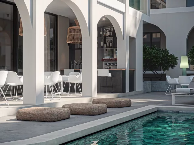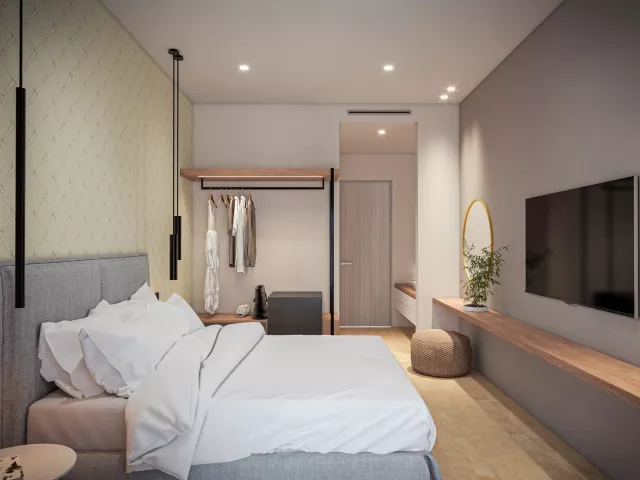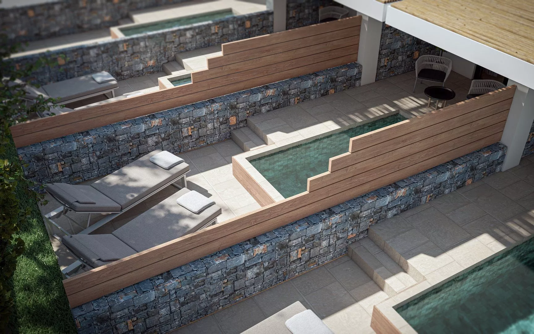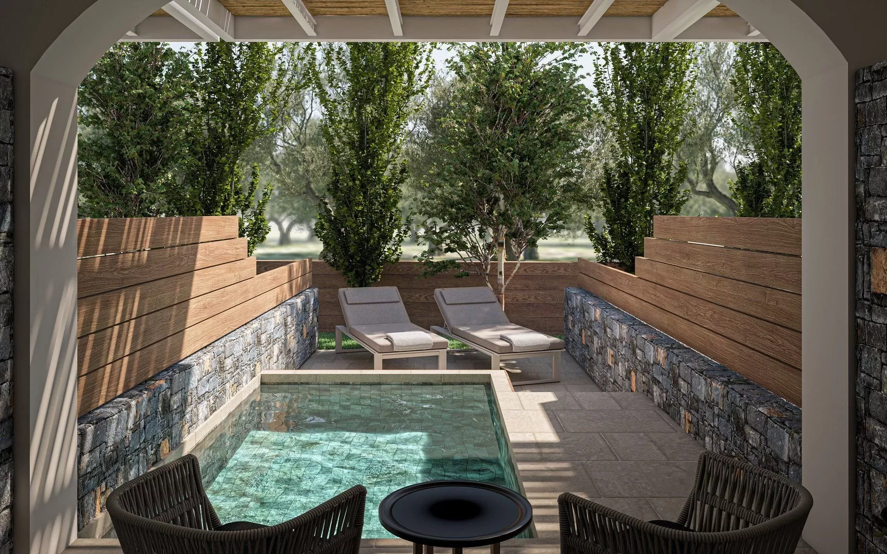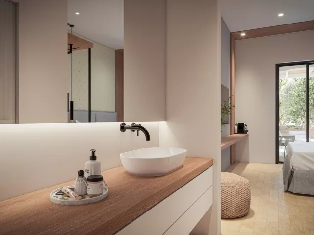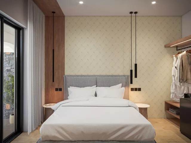 Dvojlôžková izba superior je vybavená manželskou posteľou, klimatizáciou, minibarom, SAT/TV, setom na prípravu kávy a čaju, bezpečnostnou schránkou a Wi-Fi pripojením. K dispozícii sú aj ďalšie typy izieb ako Superior s privátnym bazénom, priestrannejšie Junior suite s výhľadom na bazén a Loft suite s dvoma oddelenými spálňami a kuchynským kútom. Všetky izby majú terasu alebo balkón.