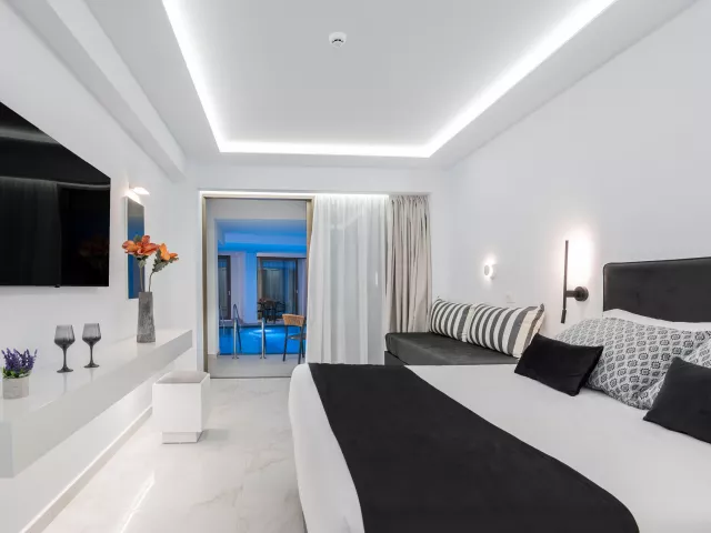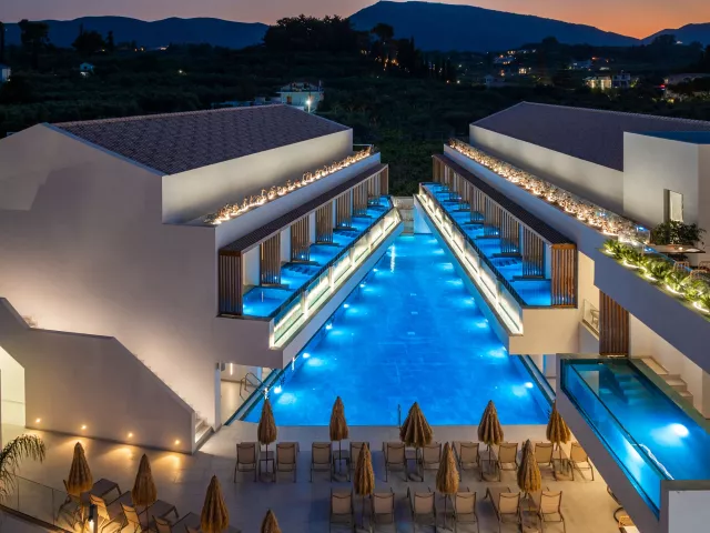 Hotel sa nachádza v centre letoviska Laganas, neďaleko obchodov, barov a reštaurácií, približne 8 km od mesta Zakynthos a 5 km od letiska. Je určený iba pre dospelých (18+).